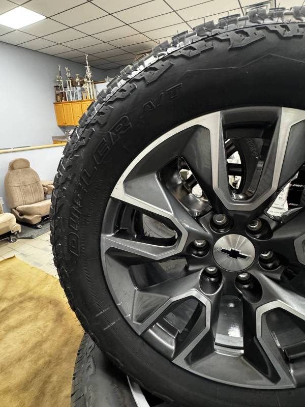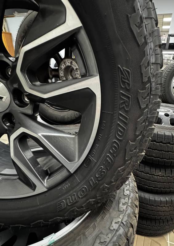 88-'25 Chevy Silverado 1500 Truck 20" 6 Lug Charcoal Inlay w/Machined face Aluminum Wheels with 275/60/R20 Bridgestone Dueler AT With TPMS SET OF 4!