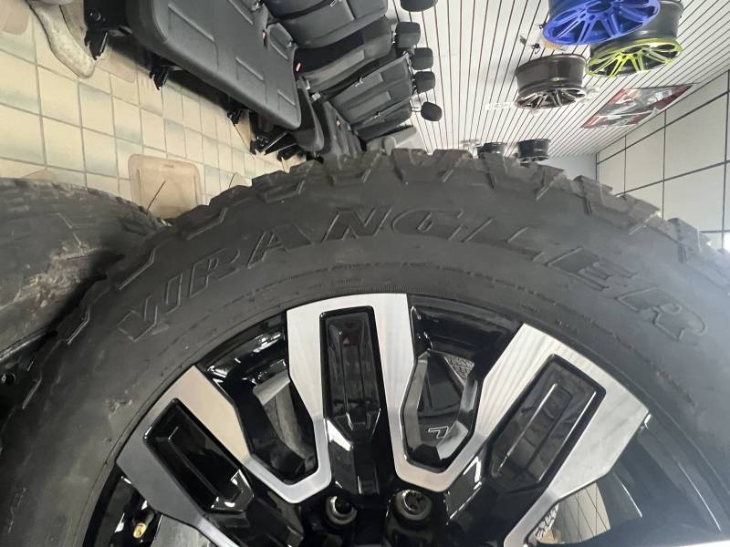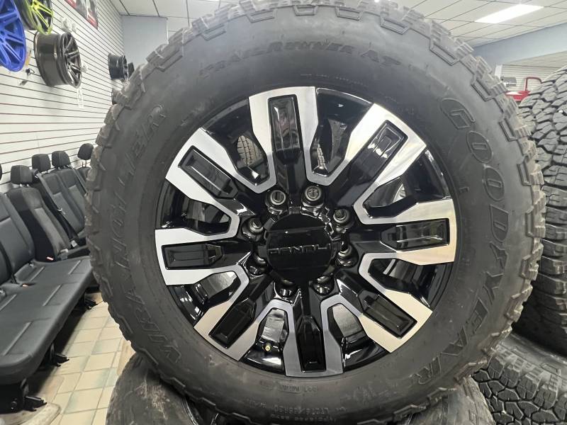 New takeoff 11-25 GMC DENALI 20" BLACK 8 LUG W/ GOODYEAR WRANGLER AT LT275/65/R20 NO TPMS SET OF 4!