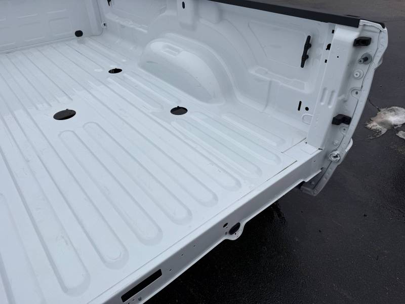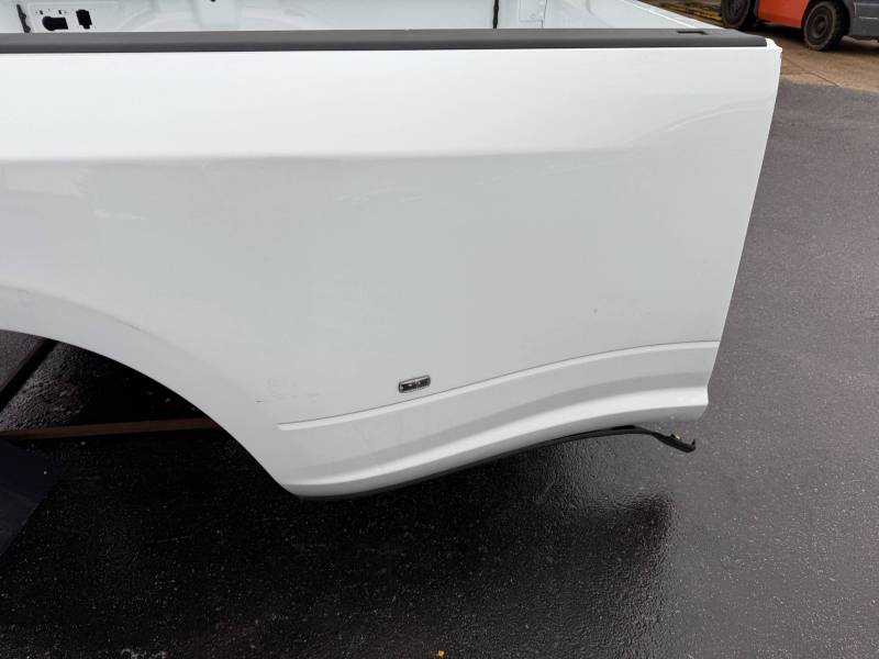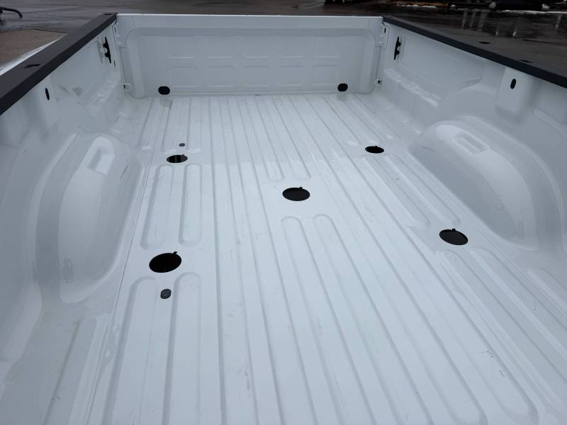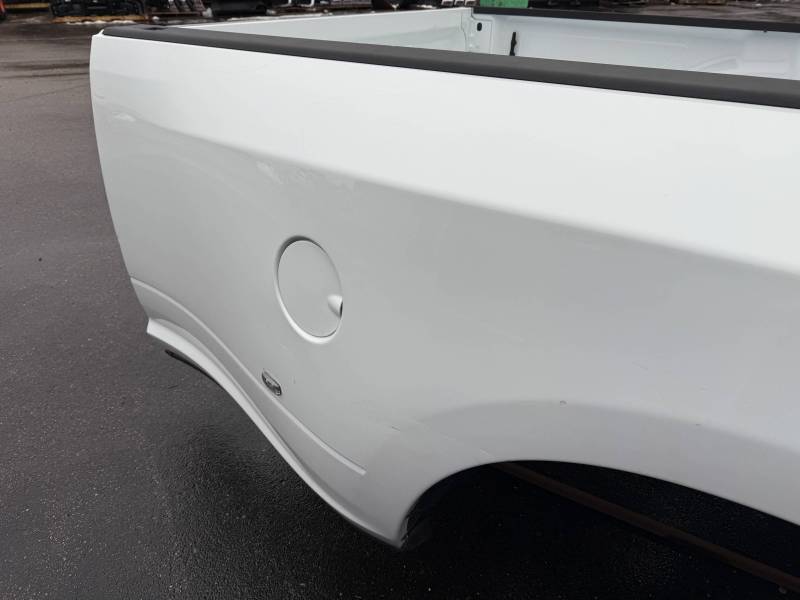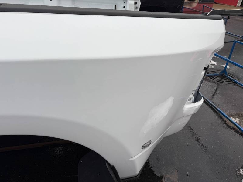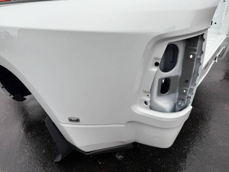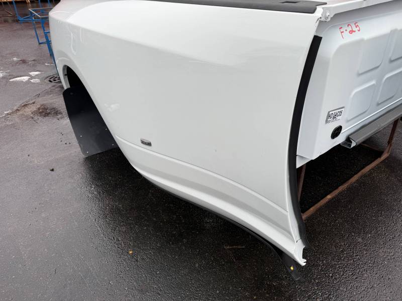 Factory white bed with 5th wheel package holes. This bed does not have a bargment plug. This bed is bare, meaning no lights, no gate. There is a minor dent on the right top dually fender and the left side has a 4" crease on the wheel arch.