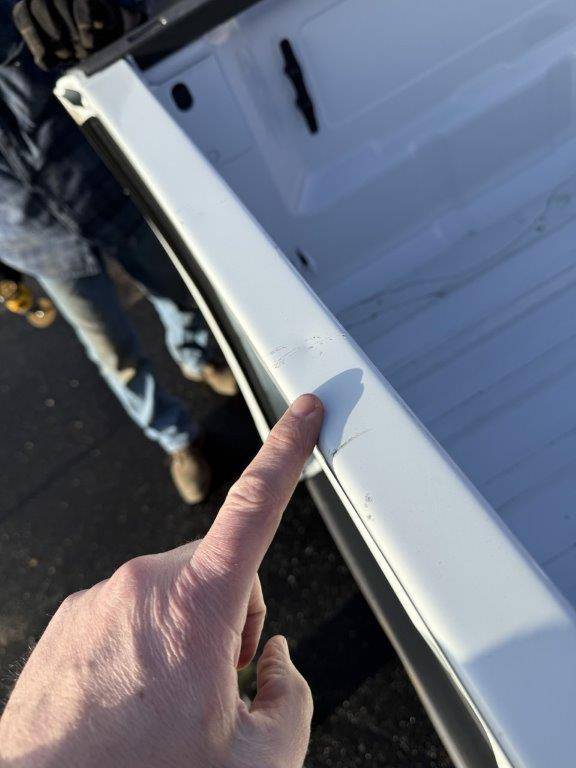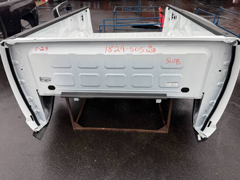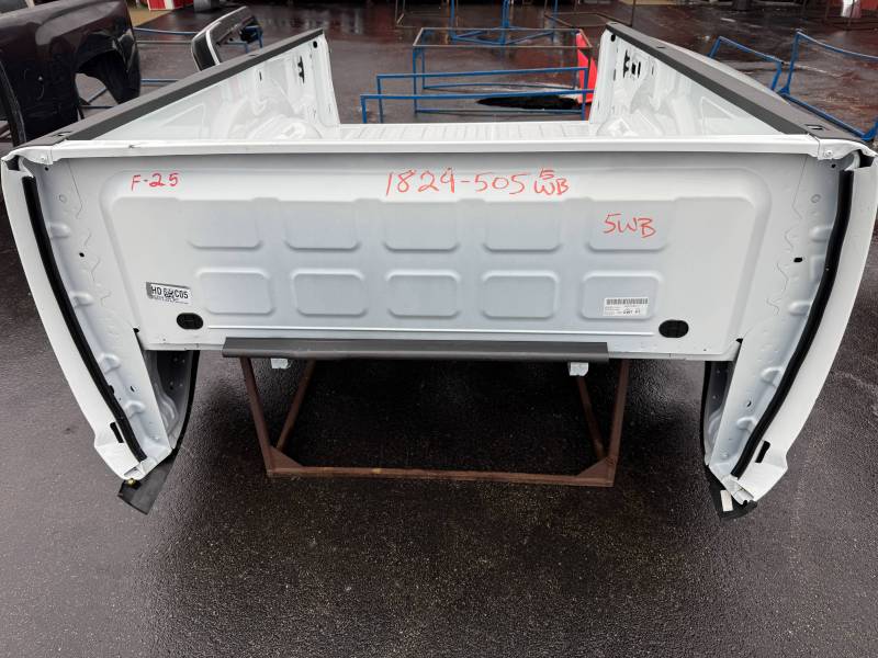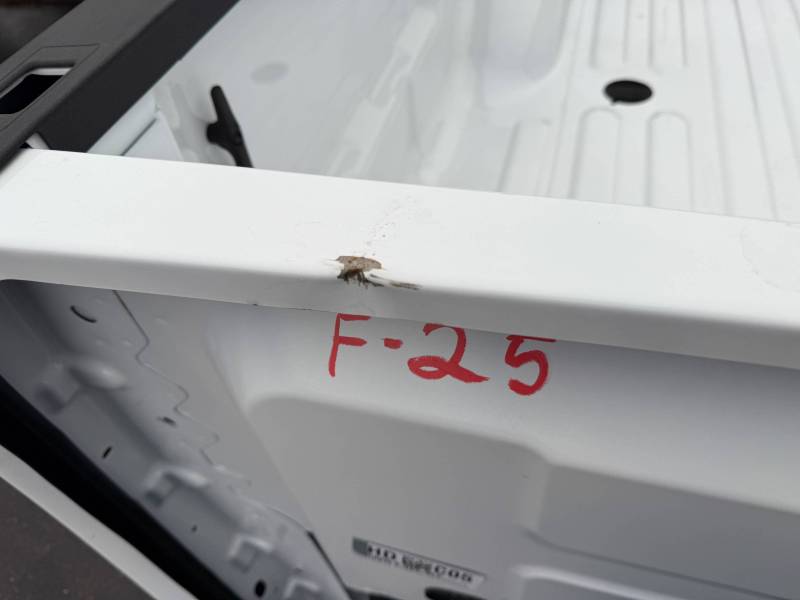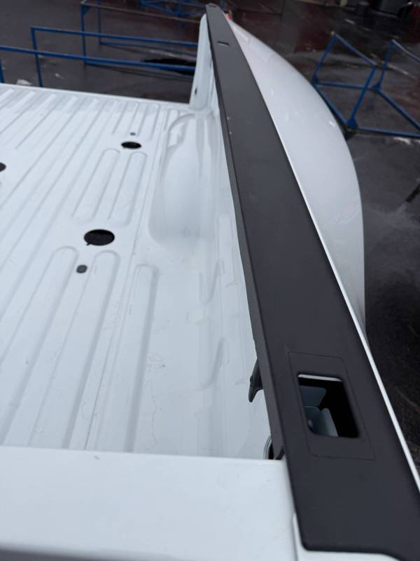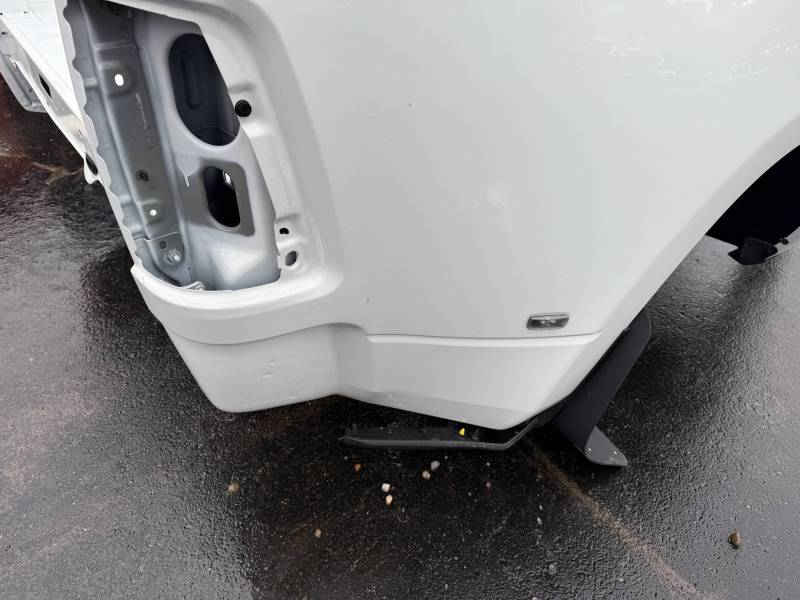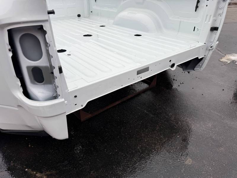 Factory white bed with 5th wheel package holes. This bed does not have a bargment plug. This bed is bare, meaning no lights, no gate. There is a minor dent on the right top dually fender and the left side has a 4" crease on the wheel arch.
