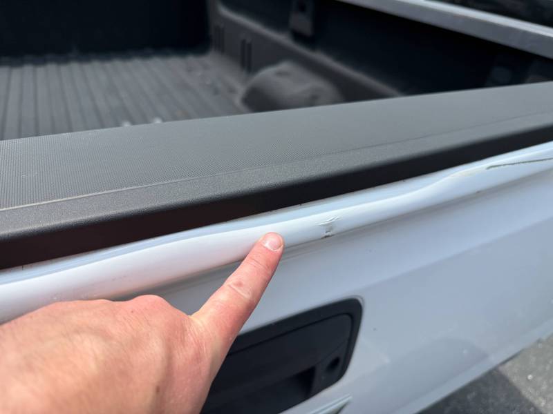 The right/passenger side is nice and straight. The right rear under the taillight has a quarter-sized dent from a bumper being pushed in.