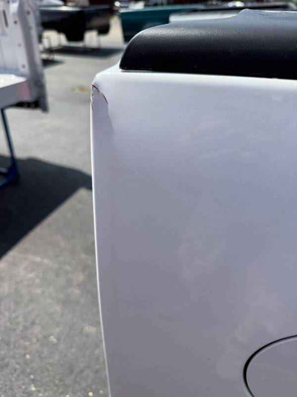 The left and right front edges have been cracked from transport, and the front header panel is slightly bent on both sides.