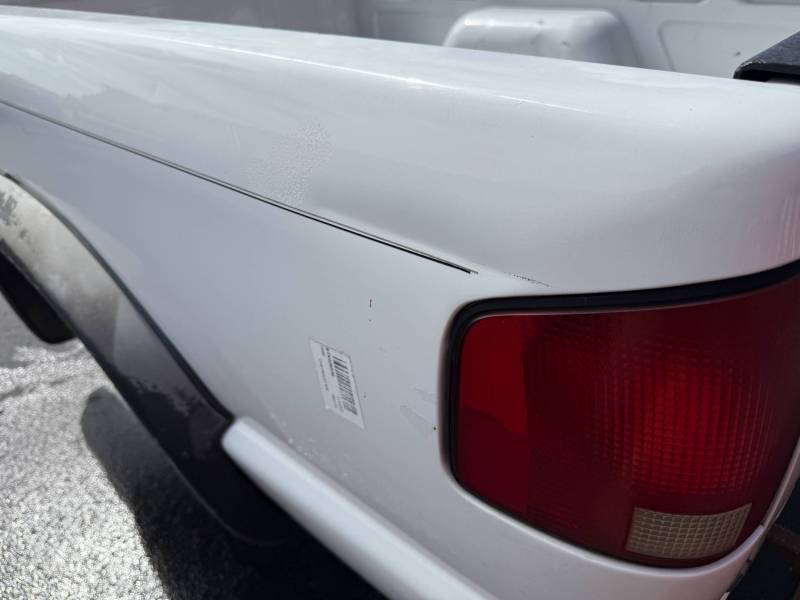 This bed comes with taillights and a tailgate. This bed comes with the Zr2 package with wide fender flares. Both fender flares are faded and broken on each side. There are scratches and paint chips on both sides, and there is a dent on the header panel.
