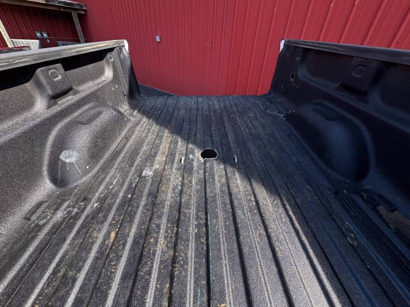 This bed comes without taillights and without a tailgate. This bed also has a sprayed-in bed liner. There is a 4" gooseneck hole on the floor, and the left inner bedside has a 3" hole from a bargment plug.