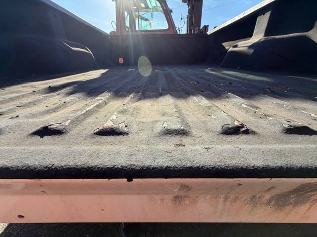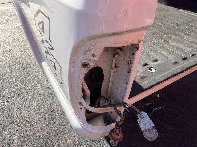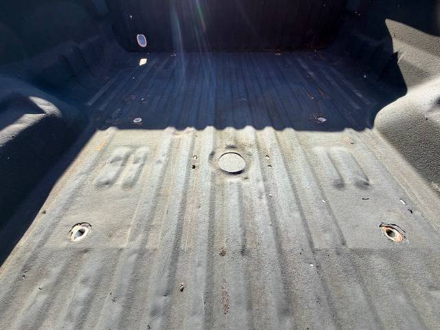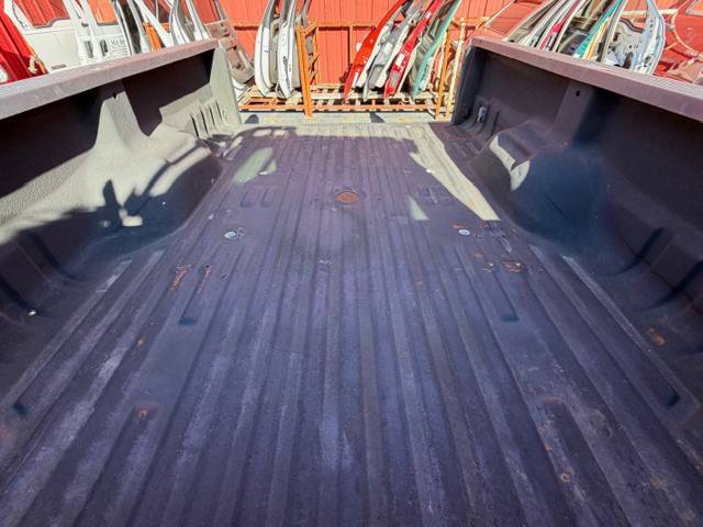This bed comes without taillights and without a tailgate. This bed has a sprayed-in bed liner, and the bed floor has dents at the back. There is a 4" gooseneck hole in the floor along with (9) holes in the floor from a ladder rack. There is a bargment plug on the left inner, along with (2) 1/8" holes drilled in the header panel and (2) 1/2" holes drilled on the top of the header panel.