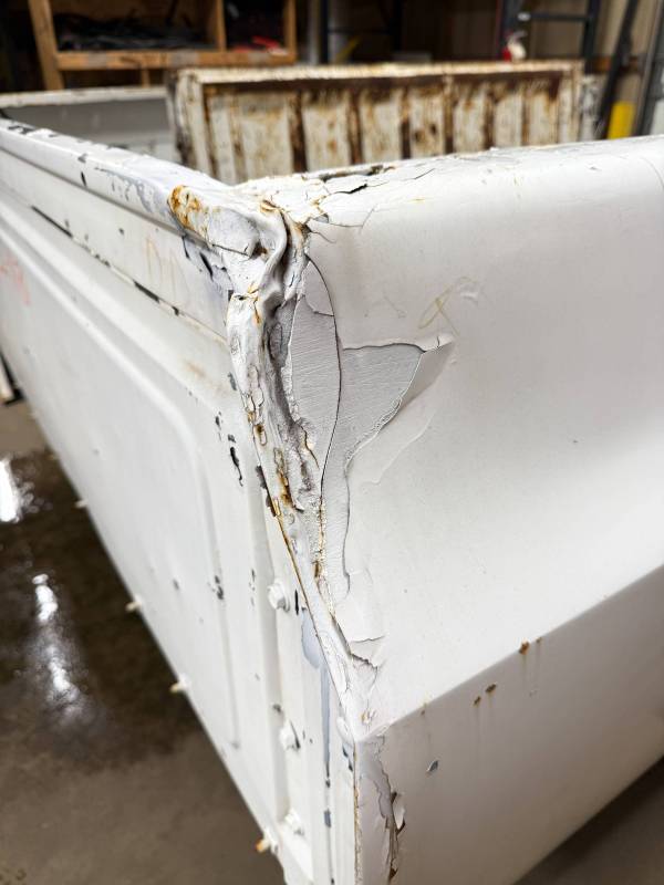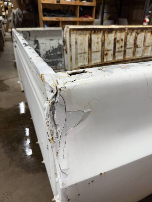 This bed is rust-free from Arizona, but not dent-free. There is damage on both front corners from transport.