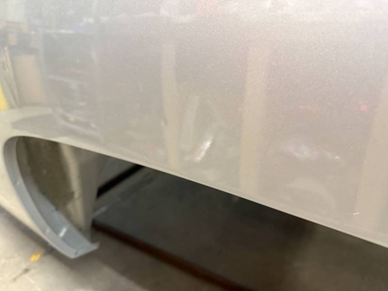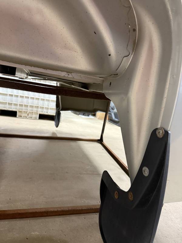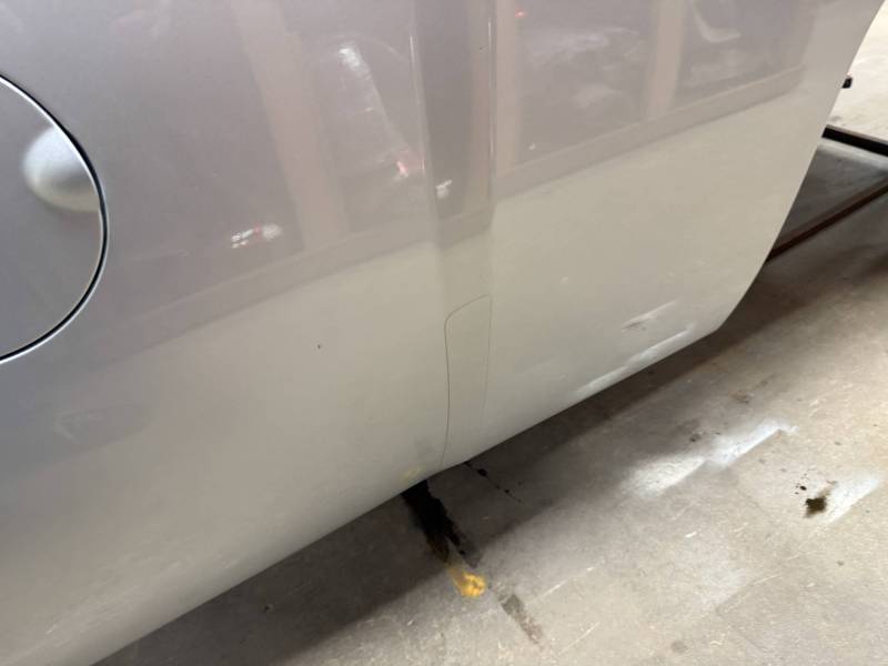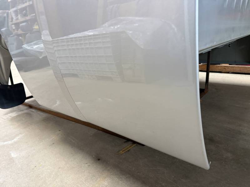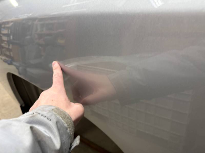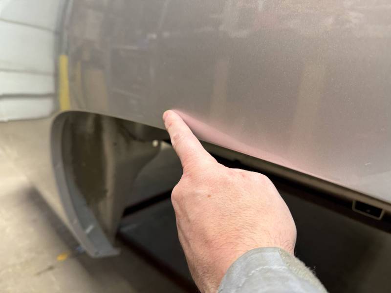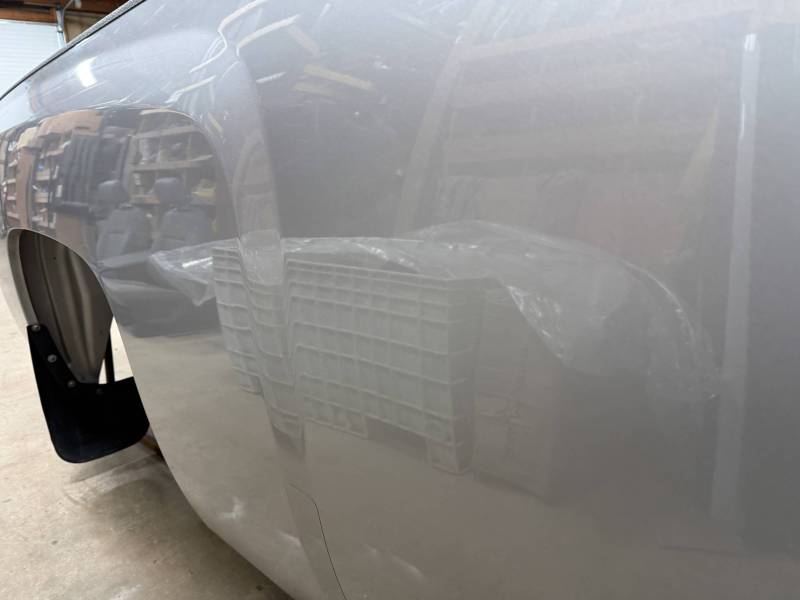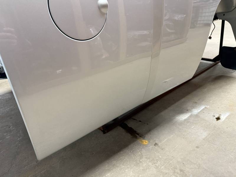 The right/passenger's side has (8) dime-sized dings by the top rail, and above the wheel arch also has (2) dime-sized dings from a ratchet strap. The right rear under the taillight has a 2" crease and a chip in the paint from a bumper being pushed in. The dings are very minor, so minor that they are hard to pick up with the lighting and the camera