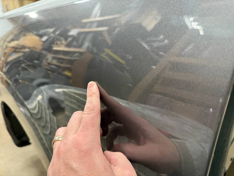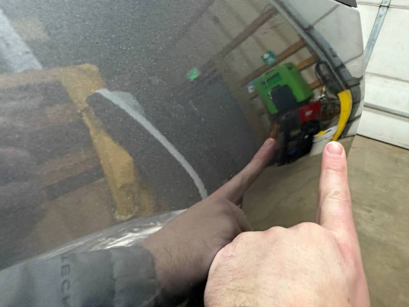 The left (driver's) side rear lower has a dime-sized ding that is hard to see.