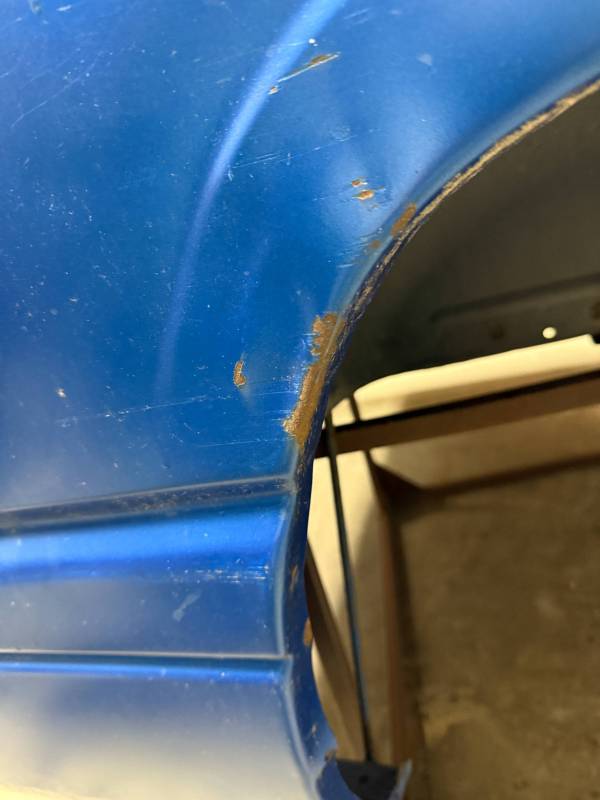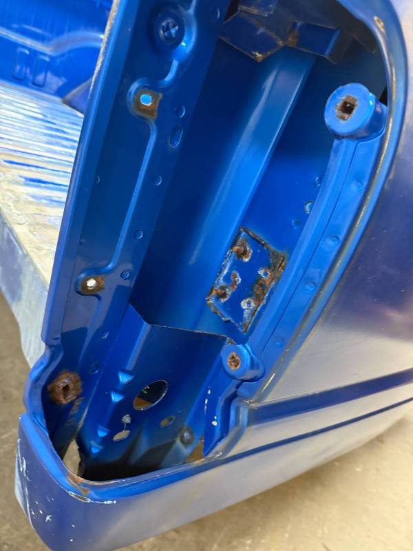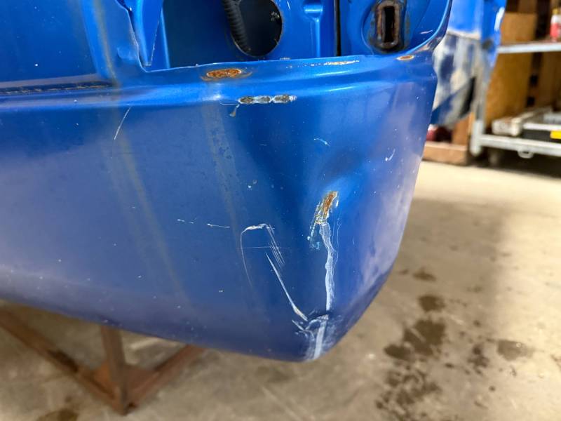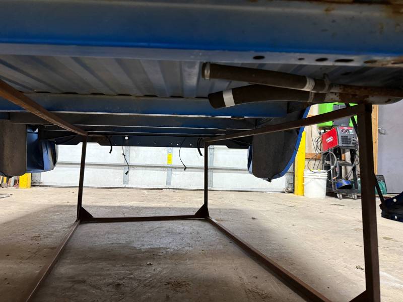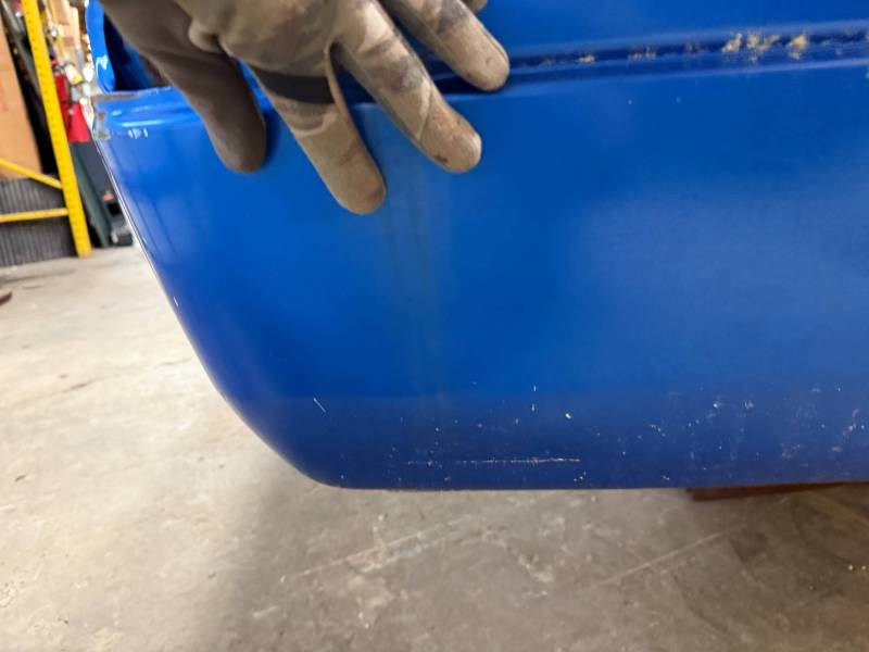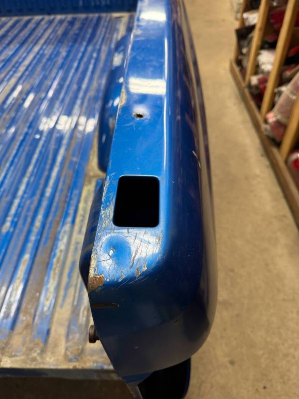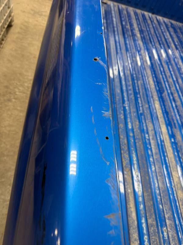 This bed comes without taillights or a tailgate. There are (8) holes drilled in each top rail, and paint has been spilled on the floor. There are dings and dents on the top rails.