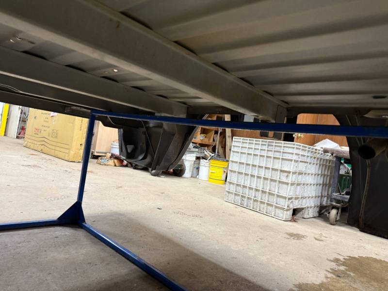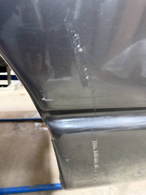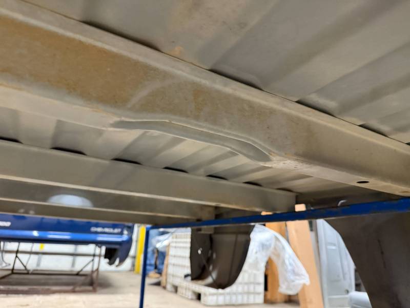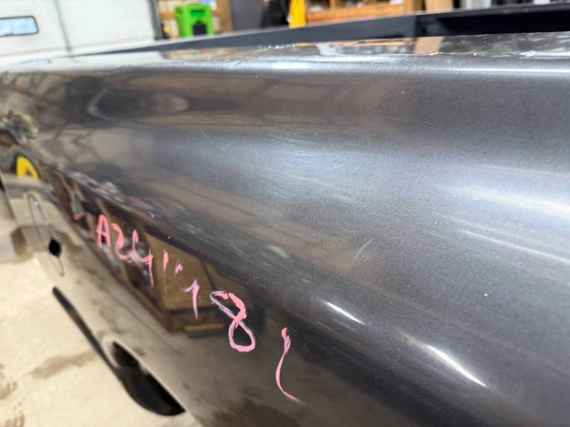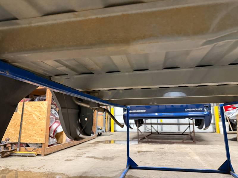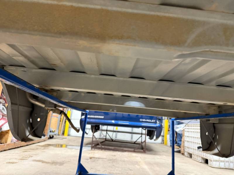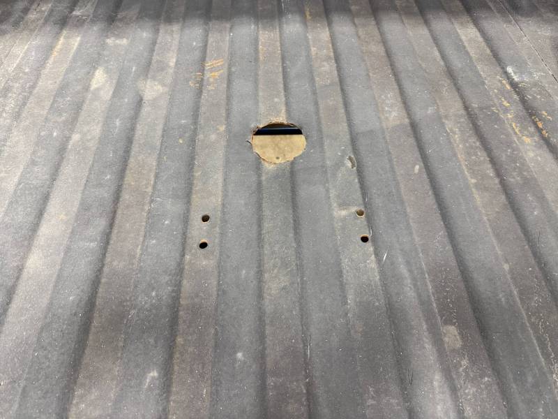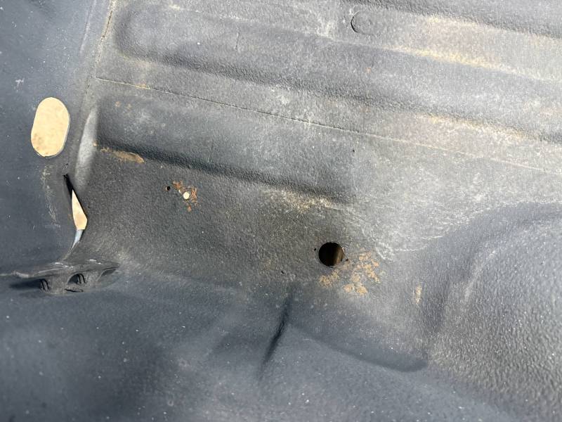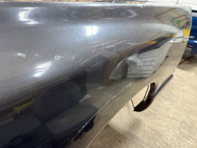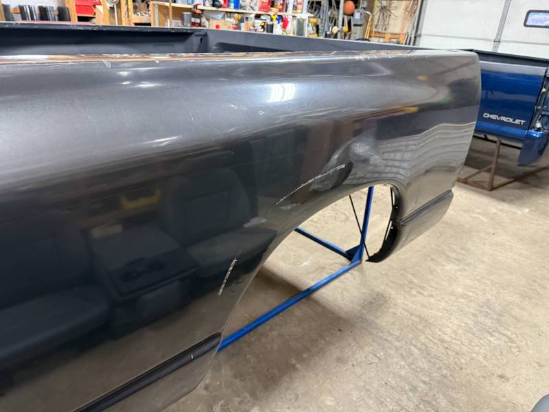 This bed comes without taillights and without a tailgate. This bed has a sprayed-in bed liner, and there is a 4" gooseneck hole in the floor and a 1" hole in the left front of the floor. There are also (6) 1/8" holes in the floor, and there are dings and dents on the top of the bed rails. There are also scratches on both sides.