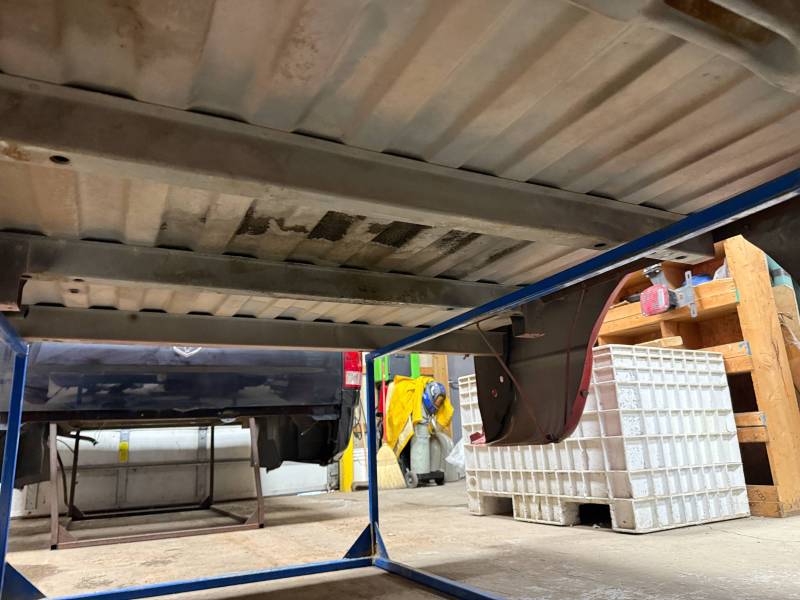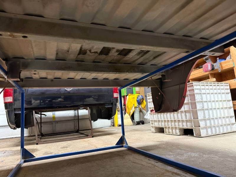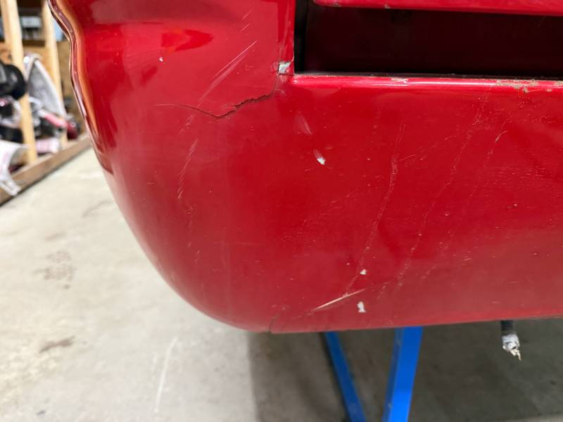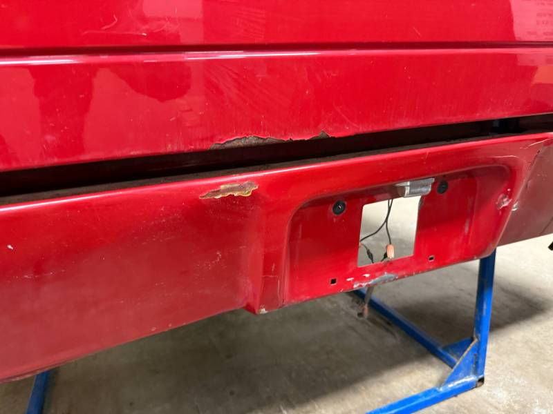 - Rear Finish: Features a metal roll pan, though the body filler (Bondo) in this area is cracking.