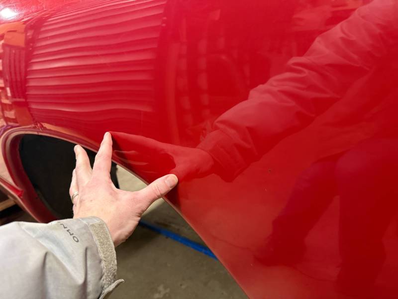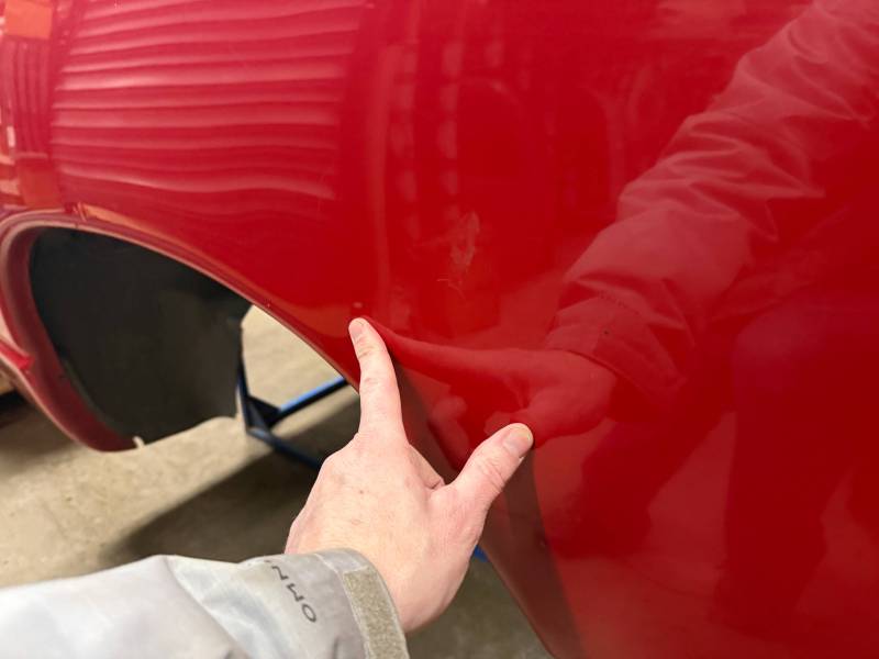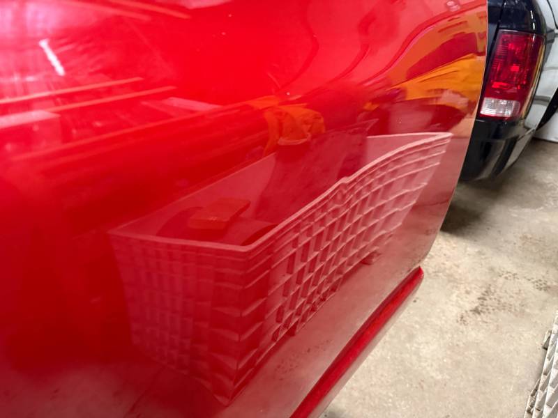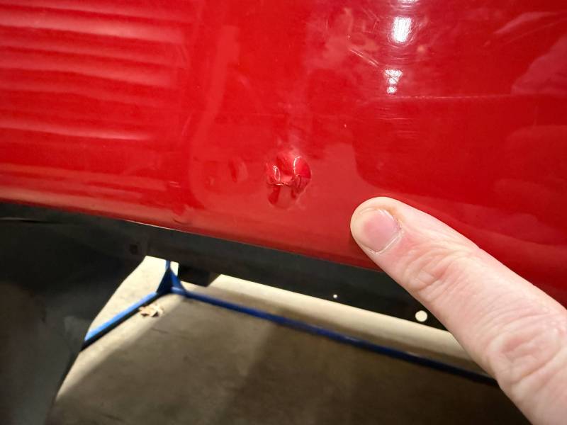 - Left Side (LH): Includes three quarter-sized dings and a dime-sized ding on the wheel arch. A light layer of Bondo has been applied to the rear section.