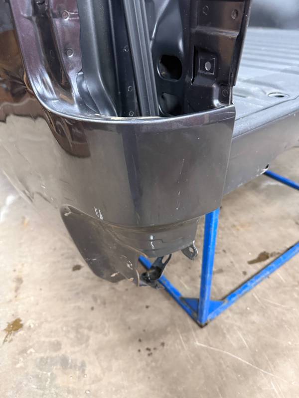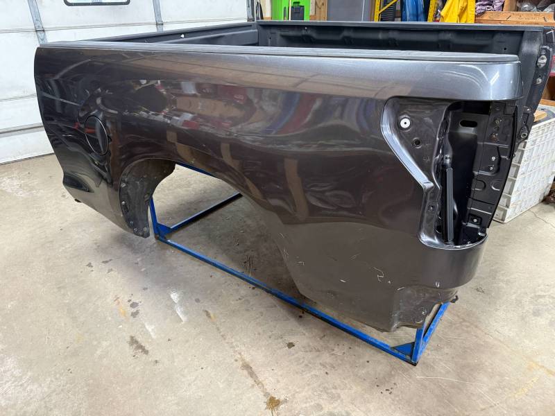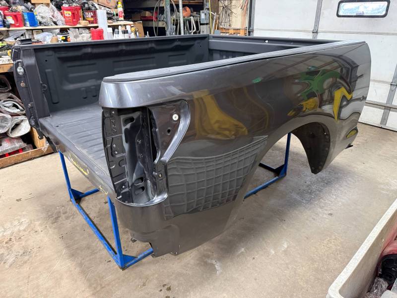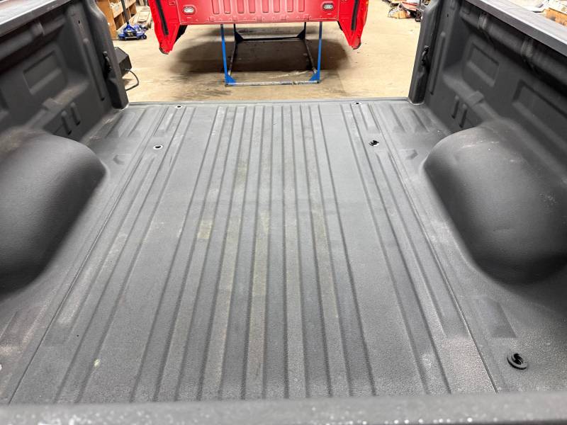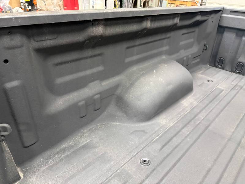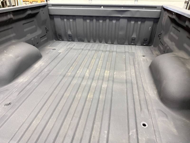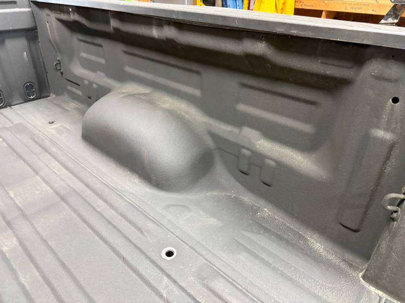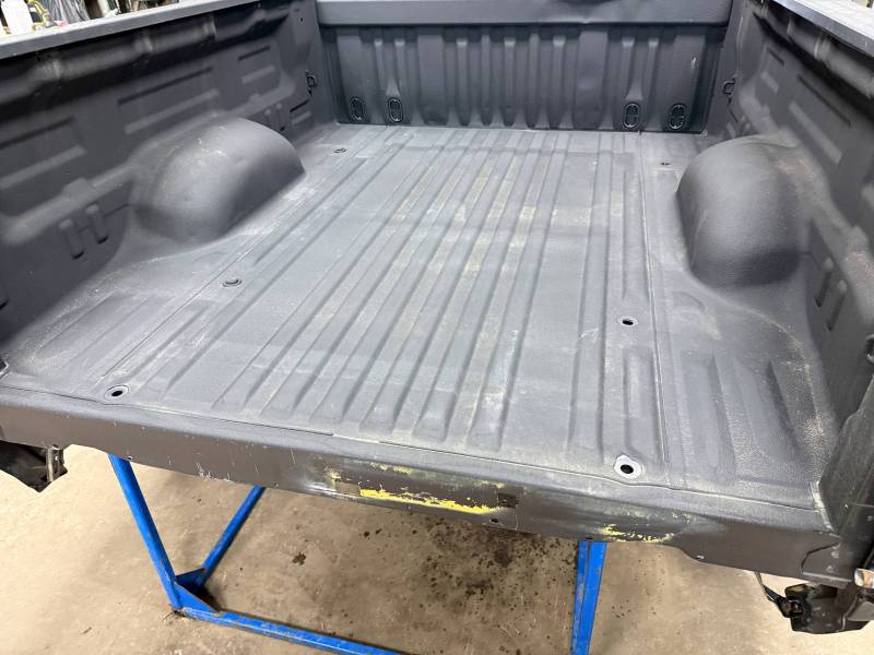 rust-free truck bed is missing the tailgate and taillights, and features an interior spray-in liner. While structurally solid, it has several cosmetic imperfections:- Header Panel: Features two distinct dents.
