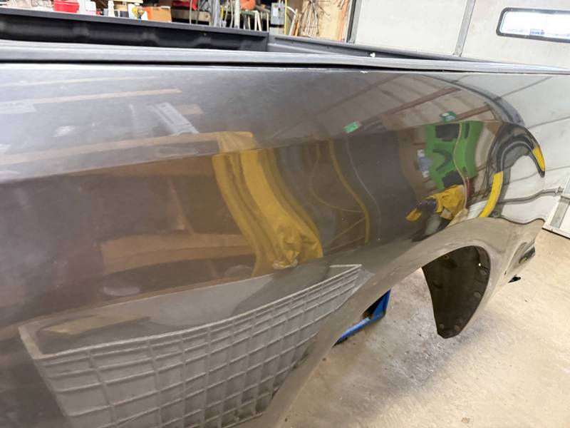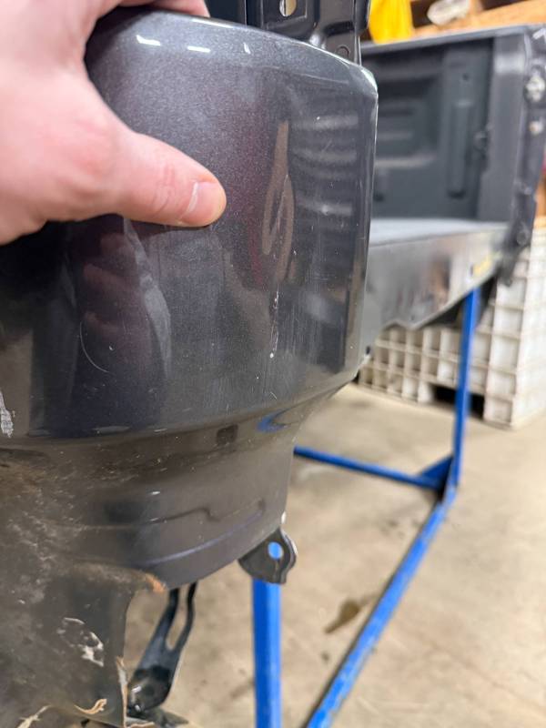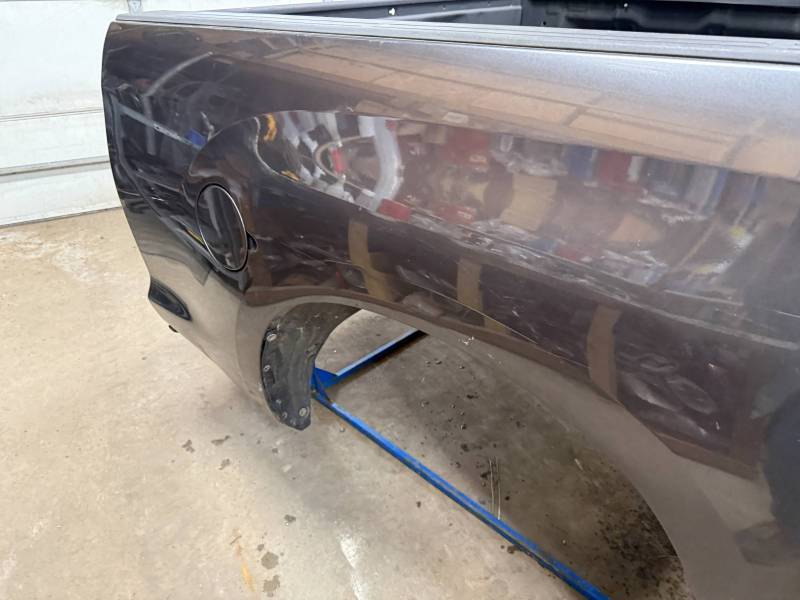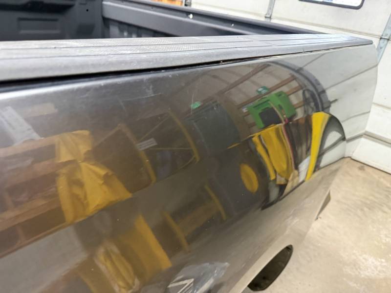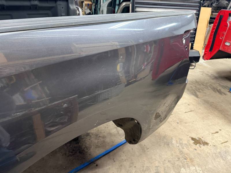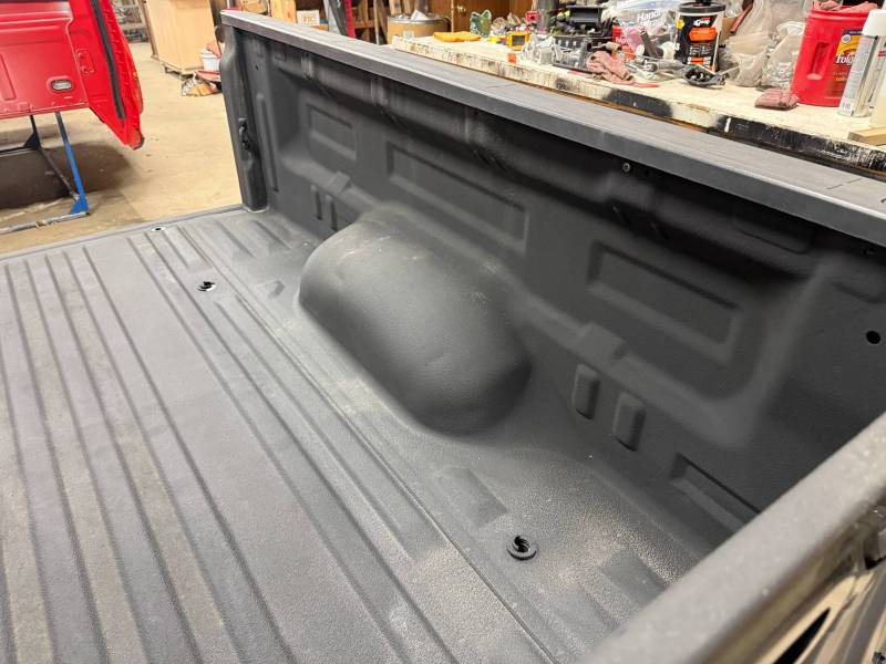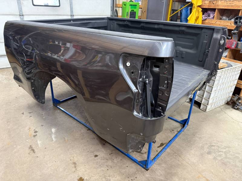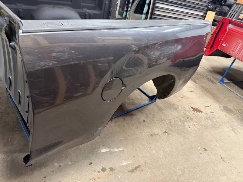rust-free truck bed is missing the tailgate and taillights, and features an interior spray-in liner. While structurally solid, it has several cosmetic imperfections:- Header Panel: Features two distinct dents.