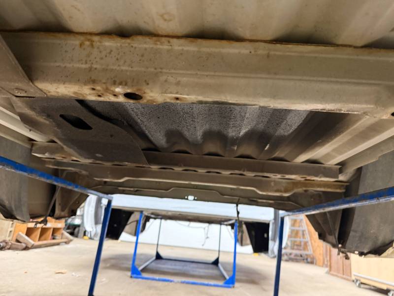 - Underside: The chassis supports are solid; minor scaly rust is present, but does not compromise structural integrity.