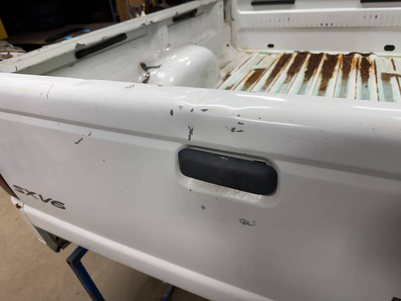 - Tailgate: Included and fully operational. Note: Dents are present along the top edge, and a quarter-sized dent is located on the lower section.