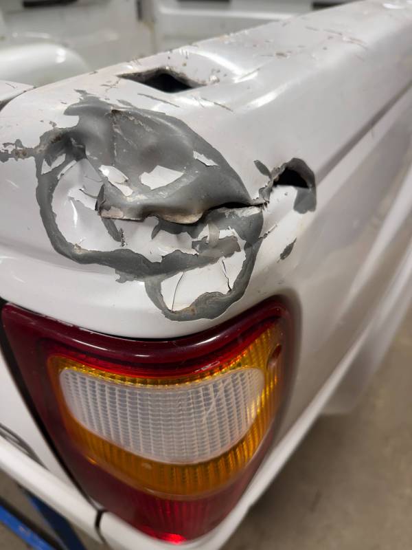 - Rear Upper: A 6-inch metal tear and accompanying dent located above the taillight.