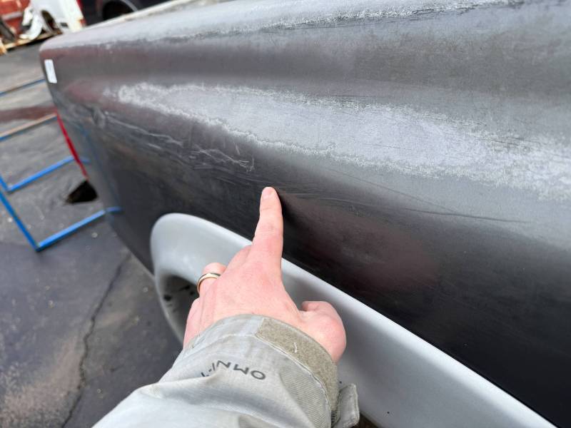 RH Specifics: Various dings (dime to quarter size) and one softball-sized lower dent.