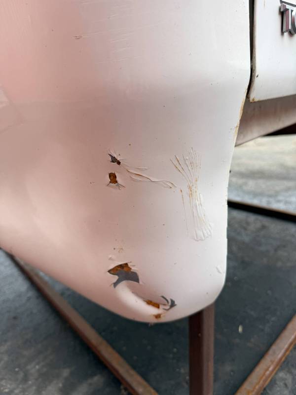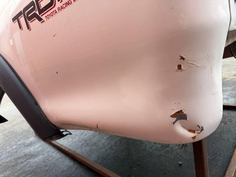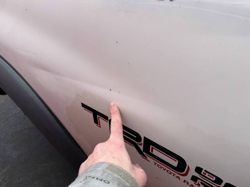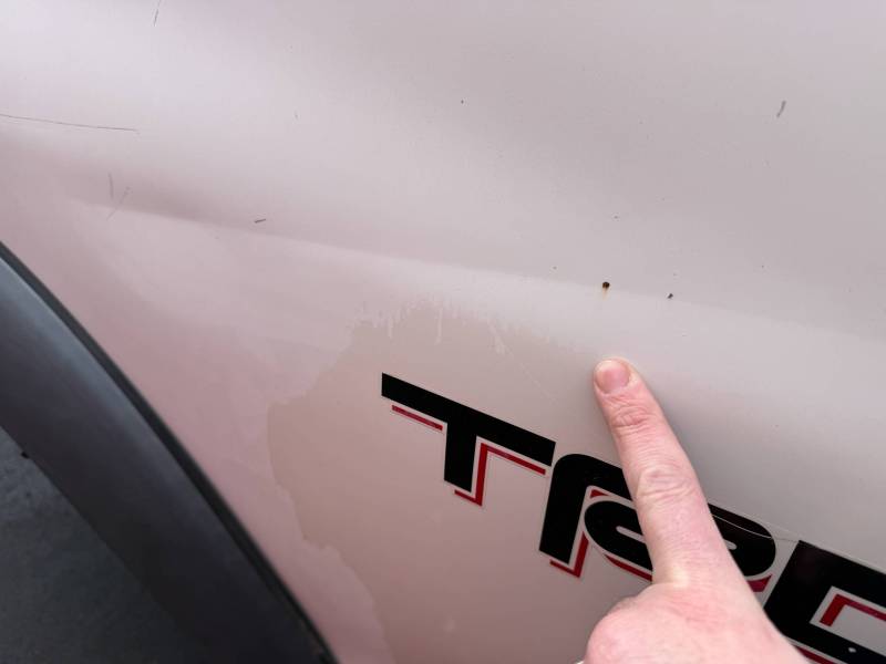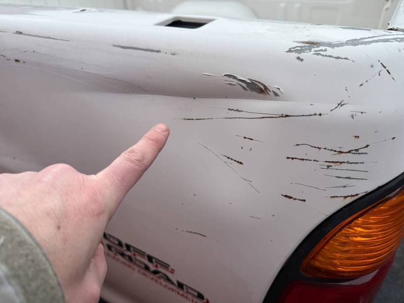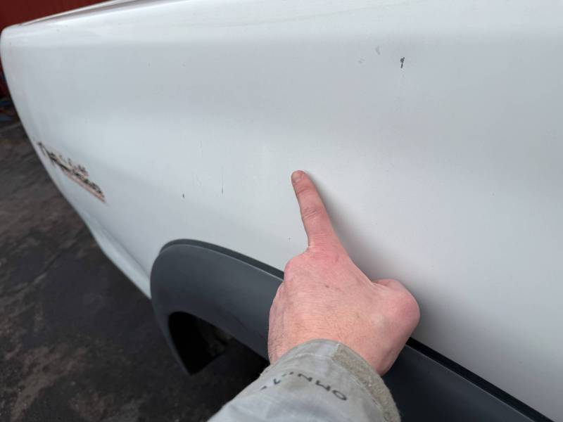 - Tailgate: Features six small dings and one significant dent on the left.