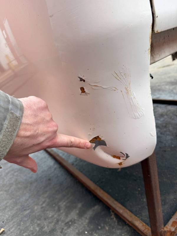 - Front/Header: Three dents are present on the header panel.