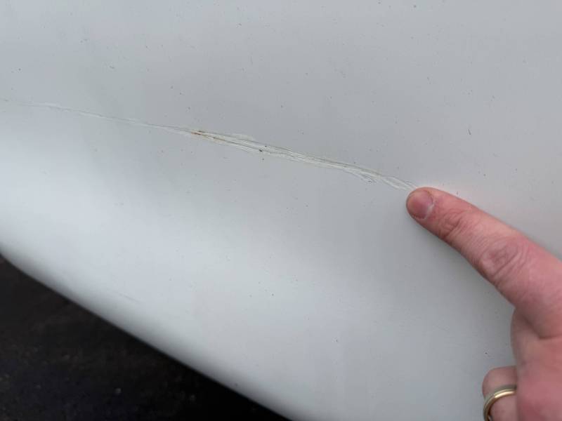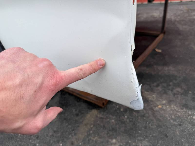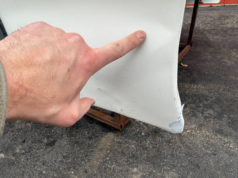- Left Side (LH): Includes a broken taillight, a 12-inch crease near the top rail, a 16-inch crease at the rear, and two quarter-sized dents below the taillight.