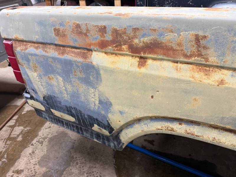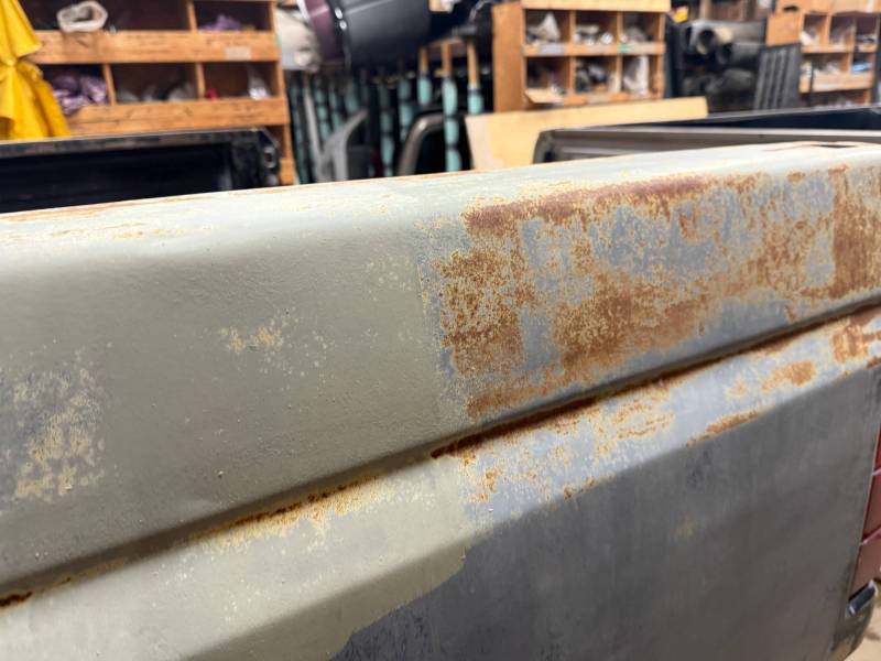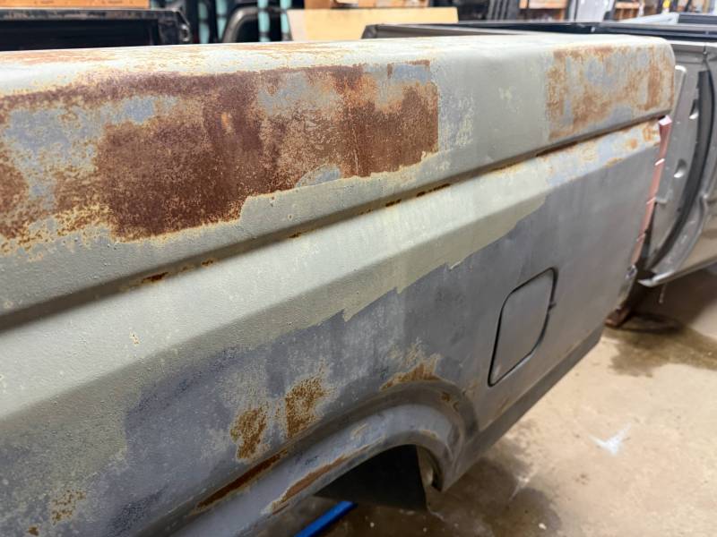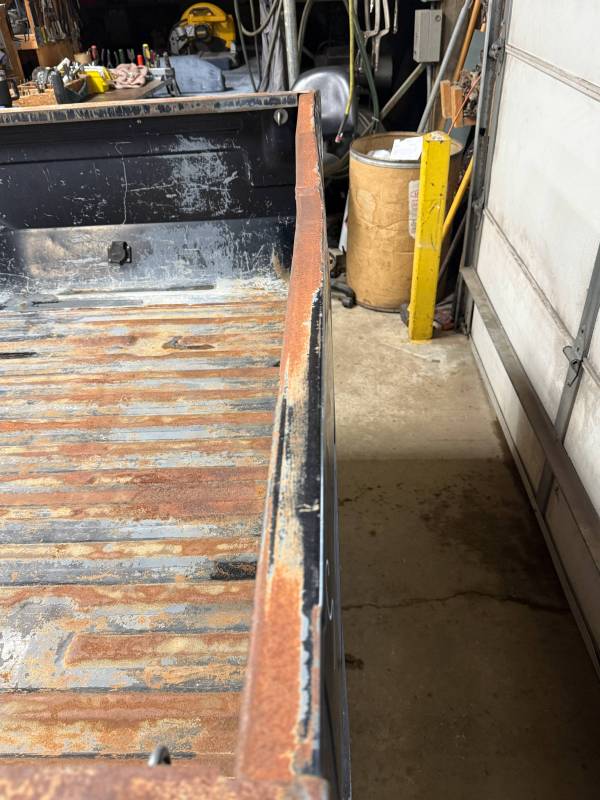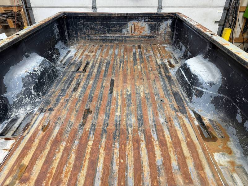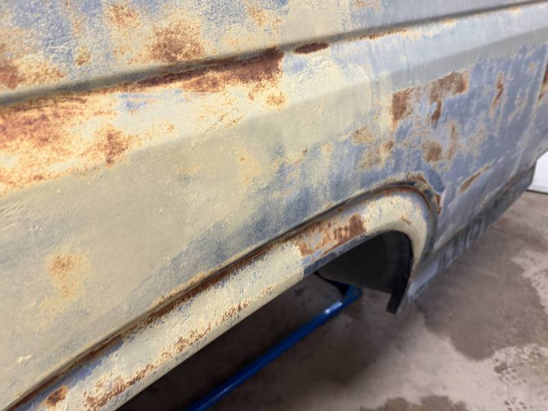 - Light layers of Bondo are present on the bed. While the panels show general surface rust, they remain fairly straight.