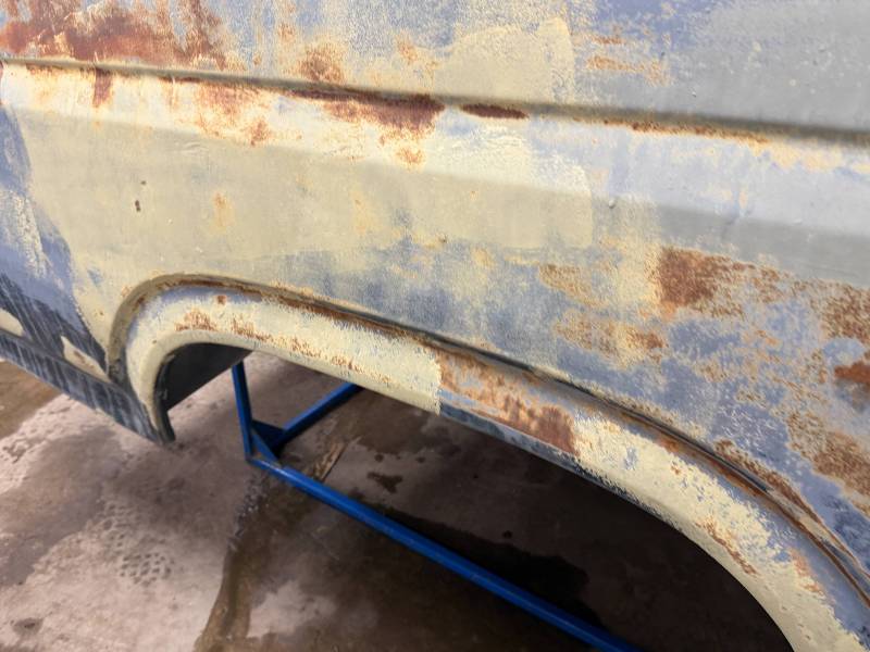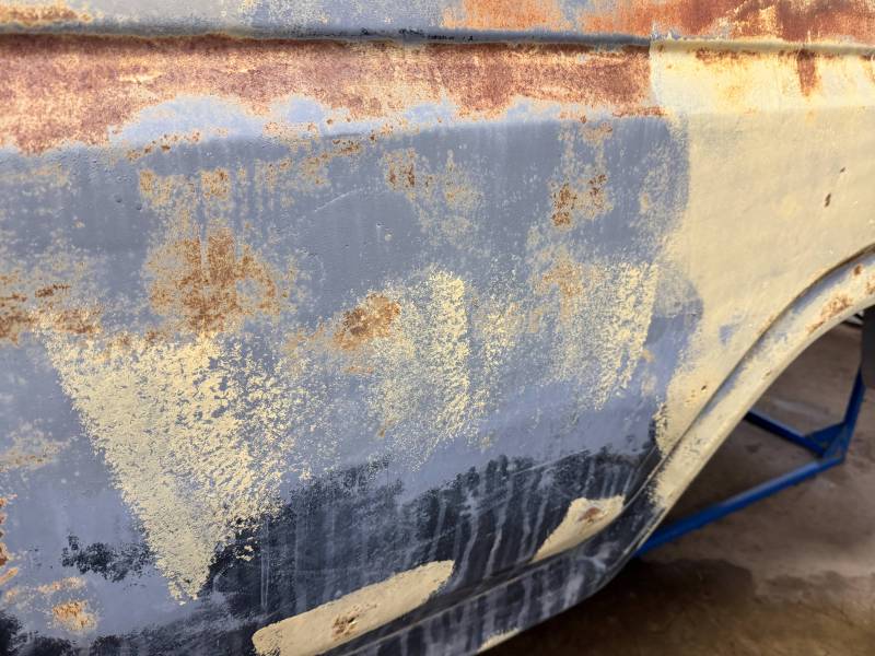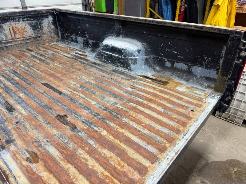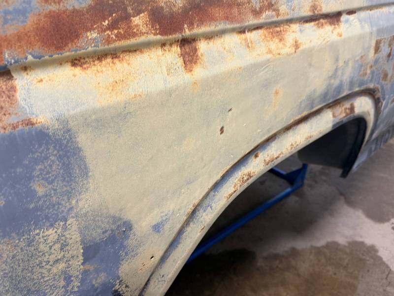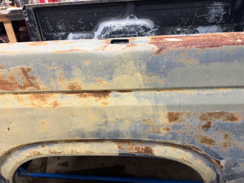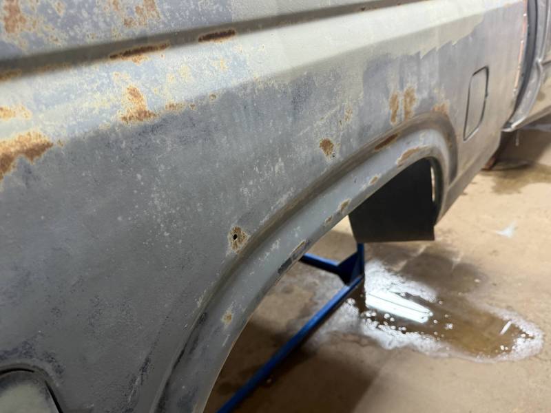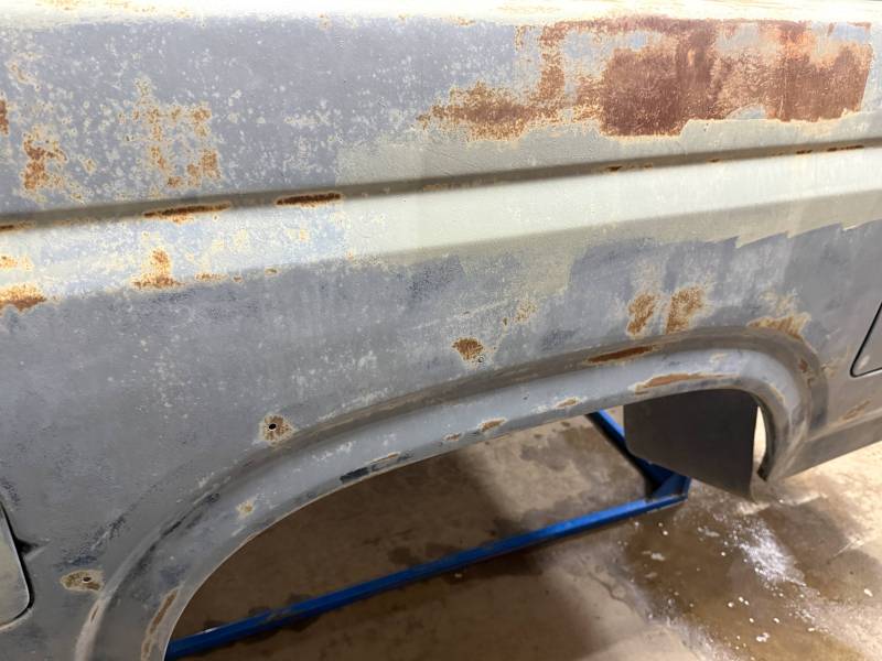 - Light layers of Bondo are present on the bed. While the panels show general surface rust, they remain fairly straight.