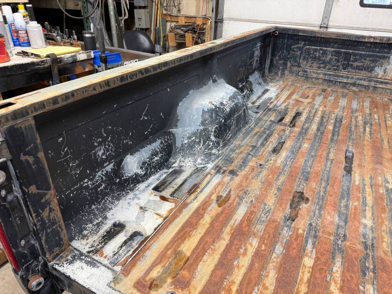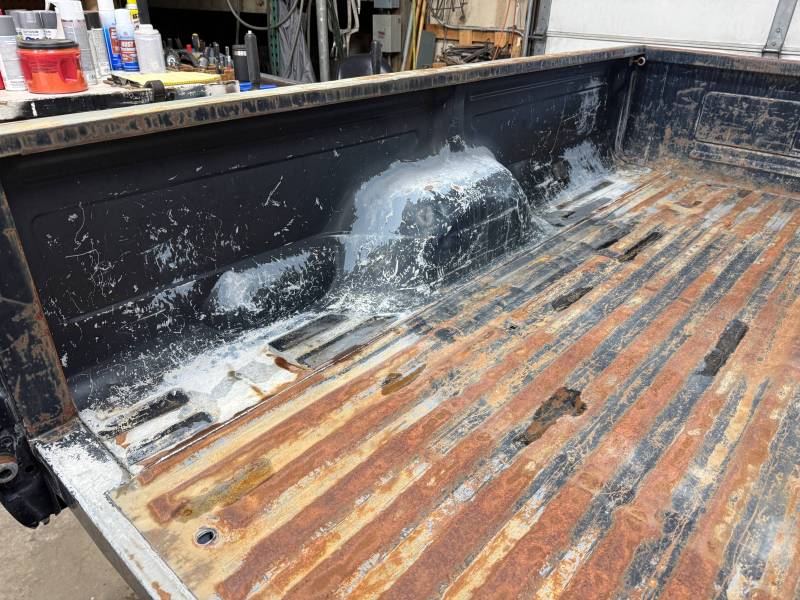 - Both bed sides have holes from the former aluminum trim that have been filled with Bondo.
