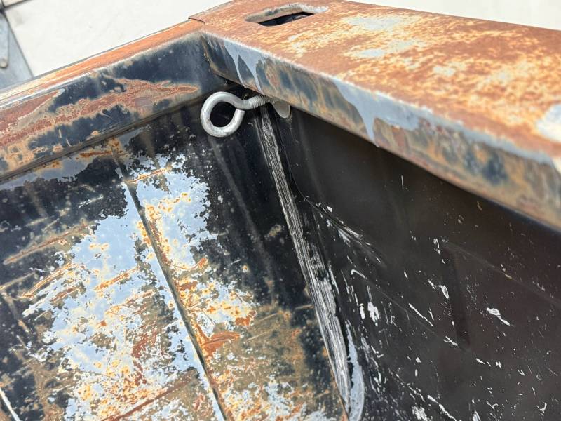 RH lens is broken. The bed interior features surface rust on the floor, two dents on the header panel, and metal eyelet loops installed on the front inner walls. A Bargman plug is located on the left inner bedside, and the floor has eight 1/4-inch holes from a previous 5th-wheel hitch.Right Hand (RH) Side: