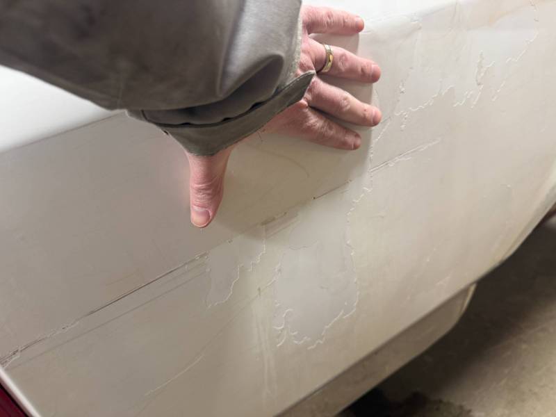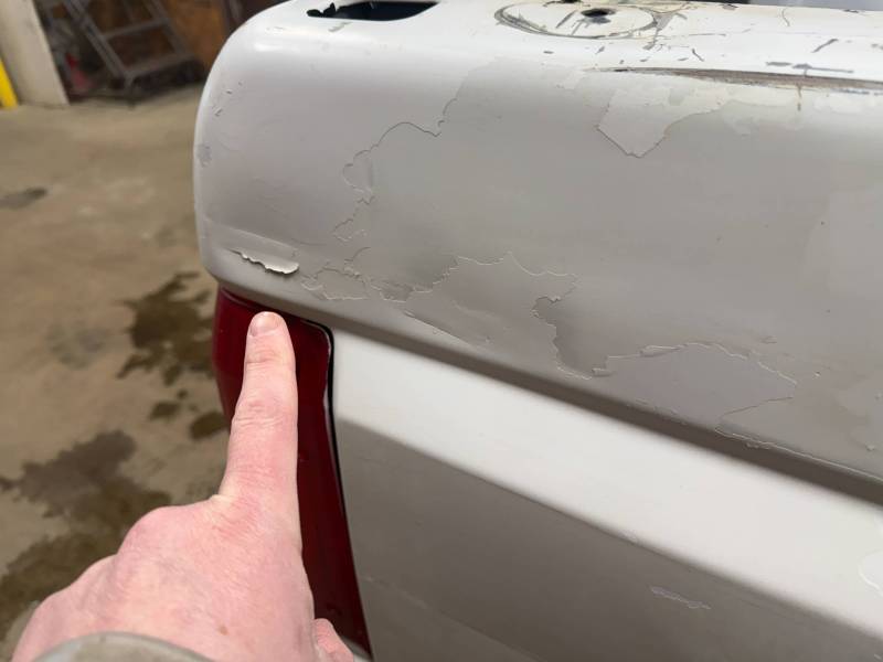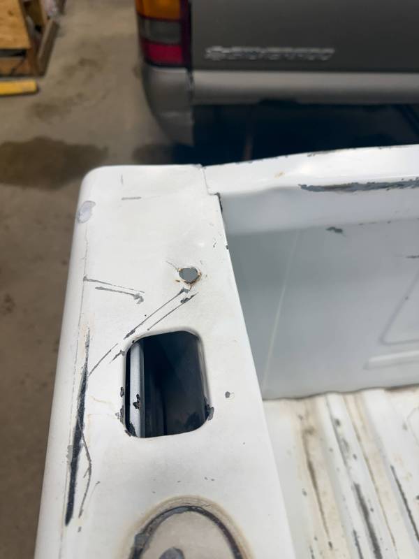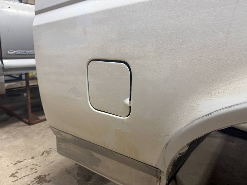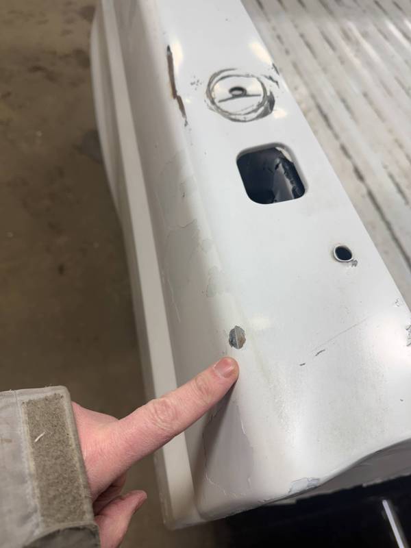 - A baseball-sized dent is located above the fuel door.