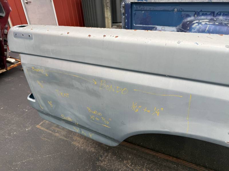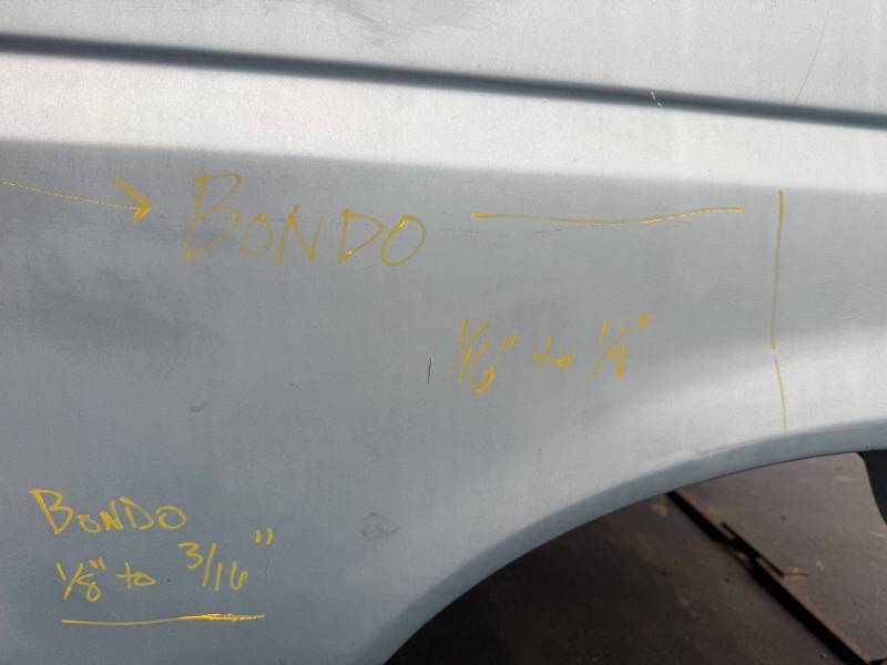 - The area near the taillight opening has a thin (1/16”) layer of Bondo body filler.