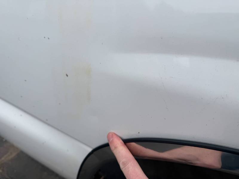 - The wheel arch has two "outy" dents (pushed from the inside), with 6 faint dime-sized dings along the side panel.