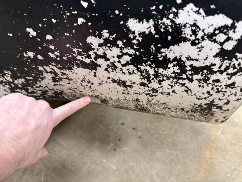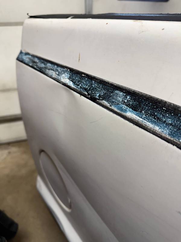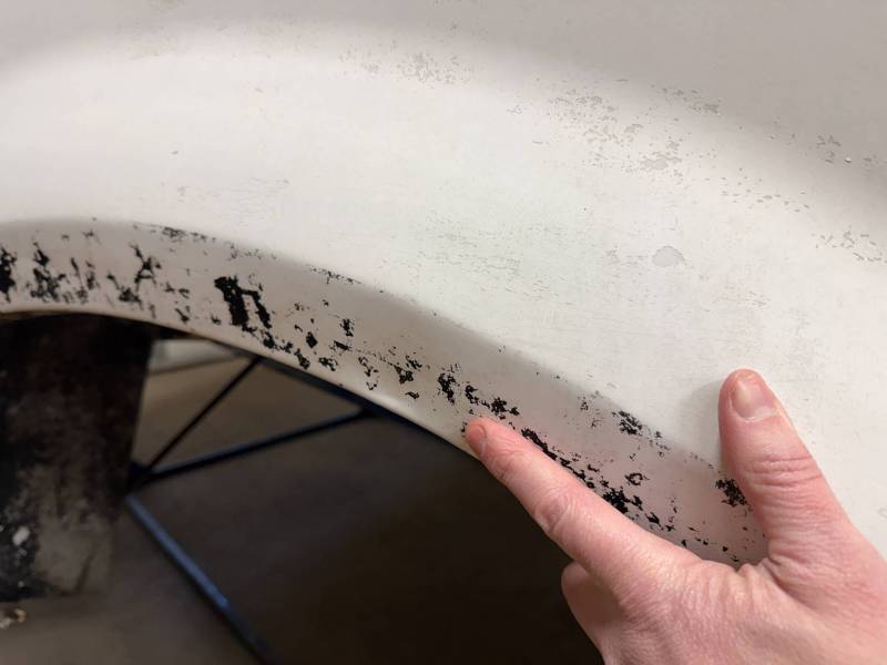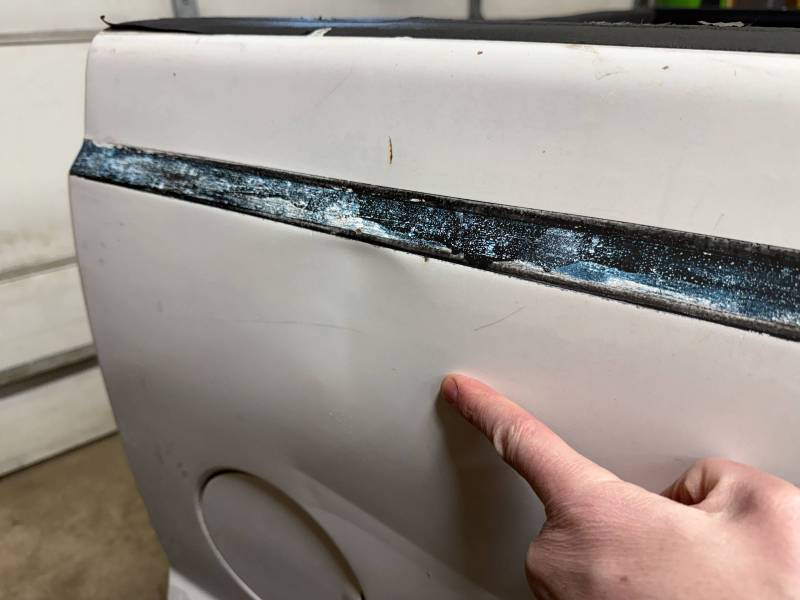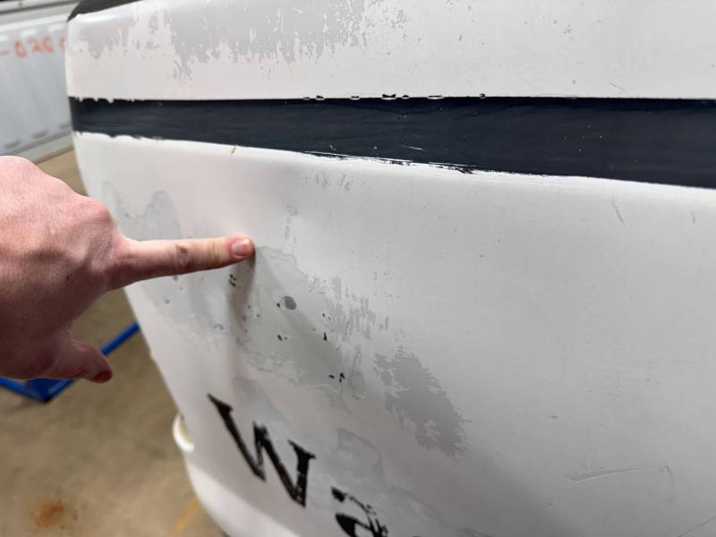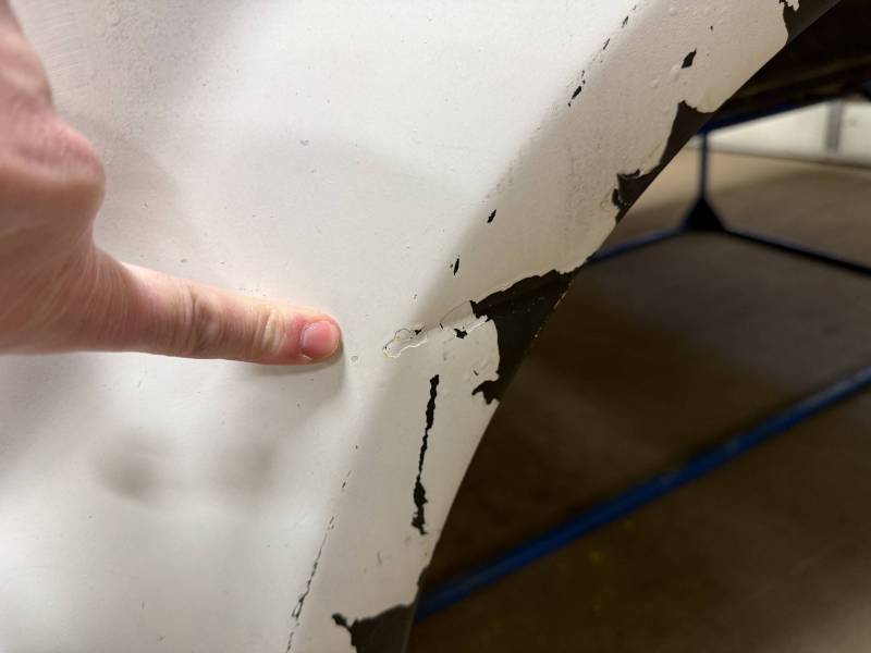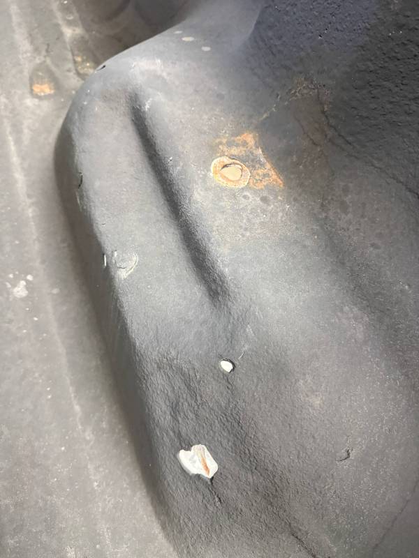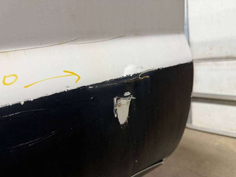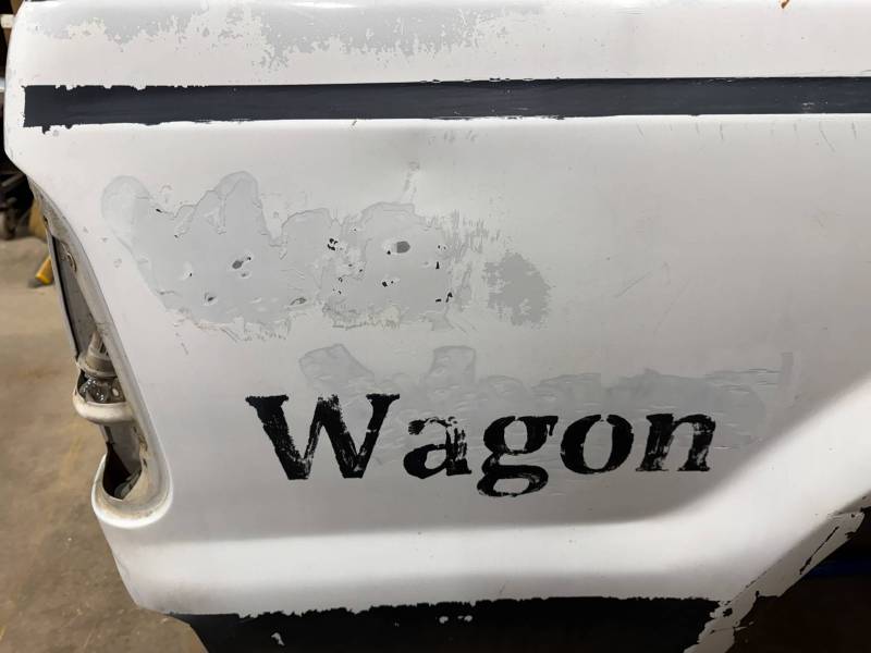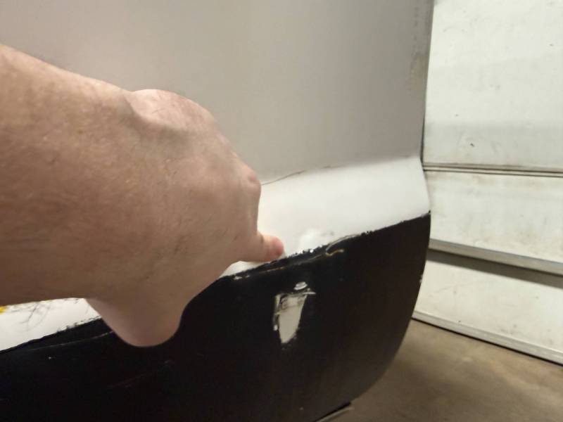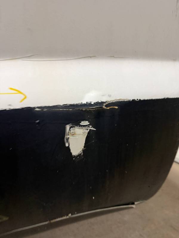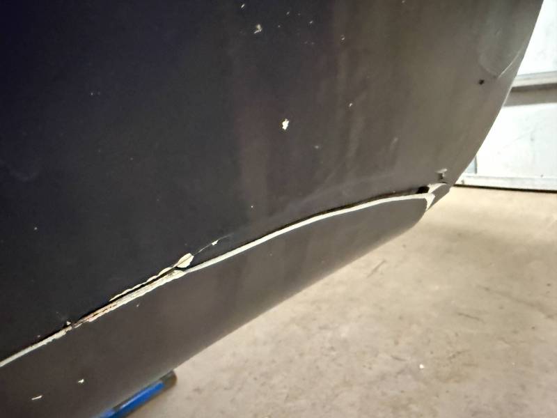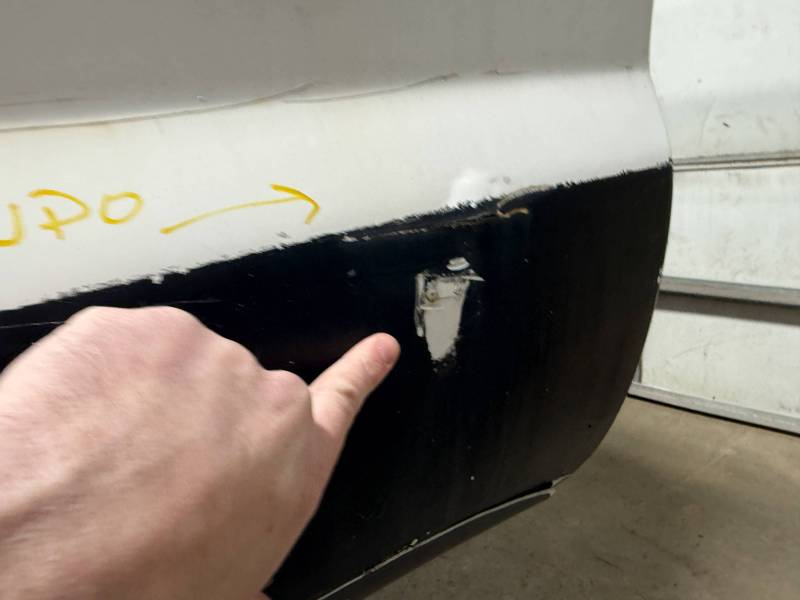 Repairs: Large weld-repaired dent above the taillight and Bondo filler on the lower rear.