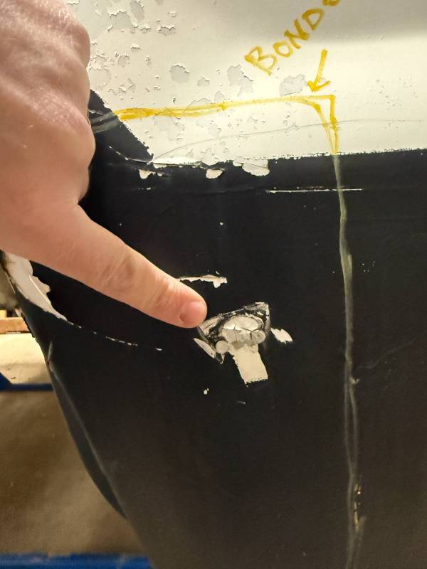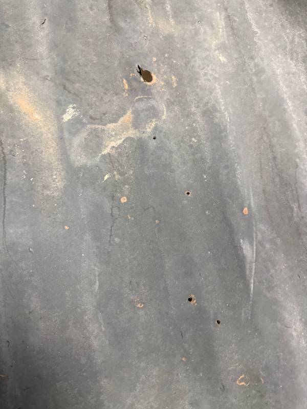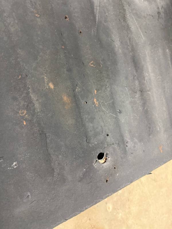 Impacts: Several baseball-sized dents and smaller dings near the top rail.