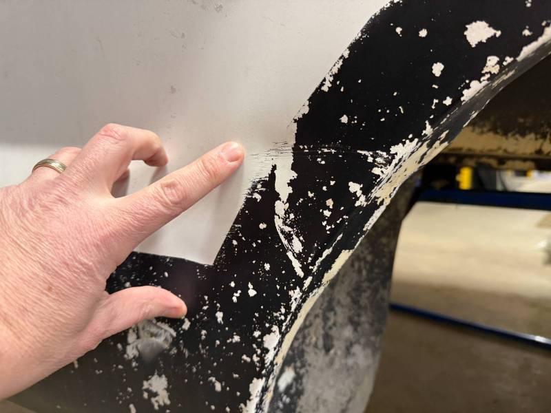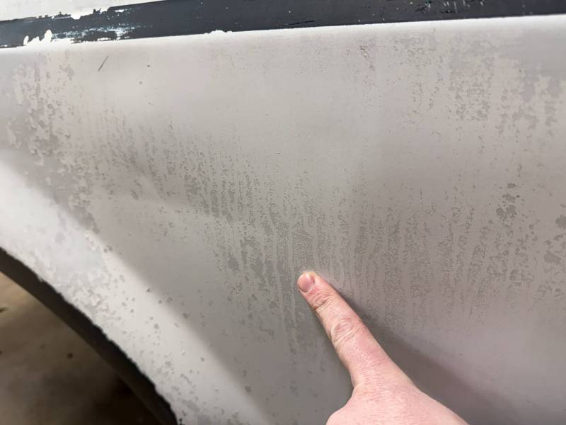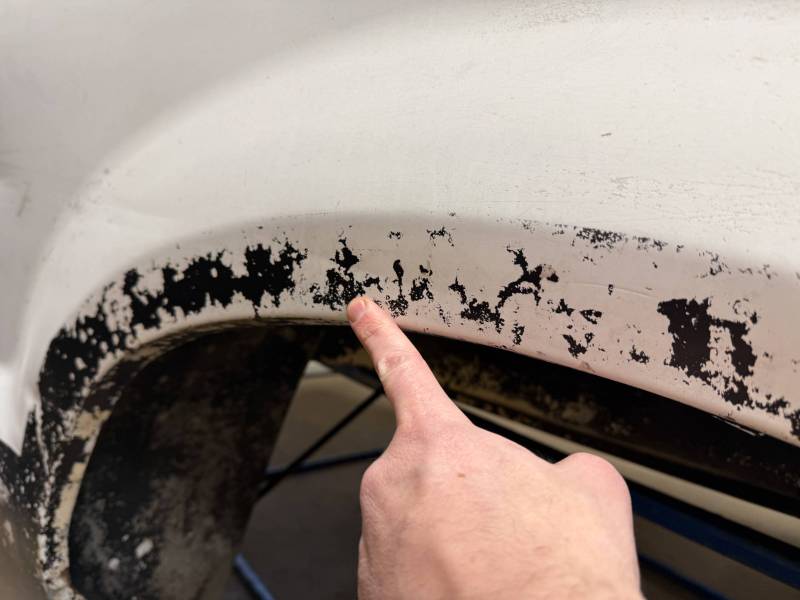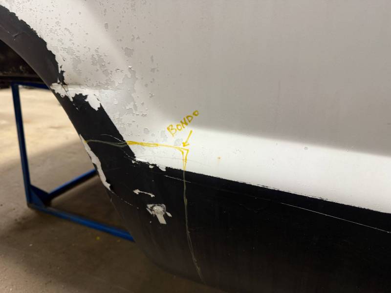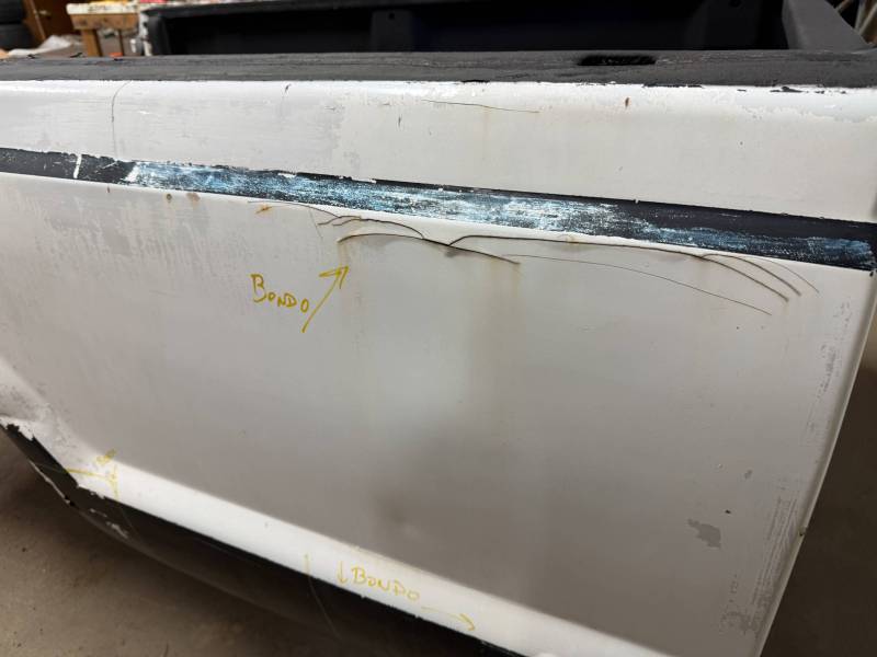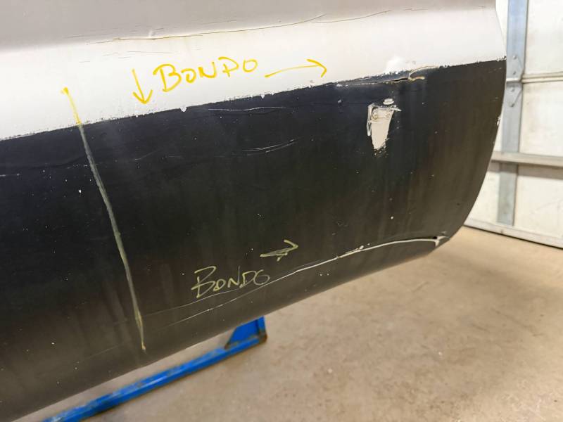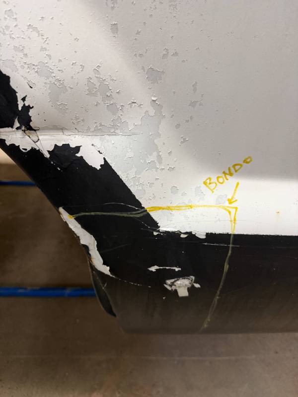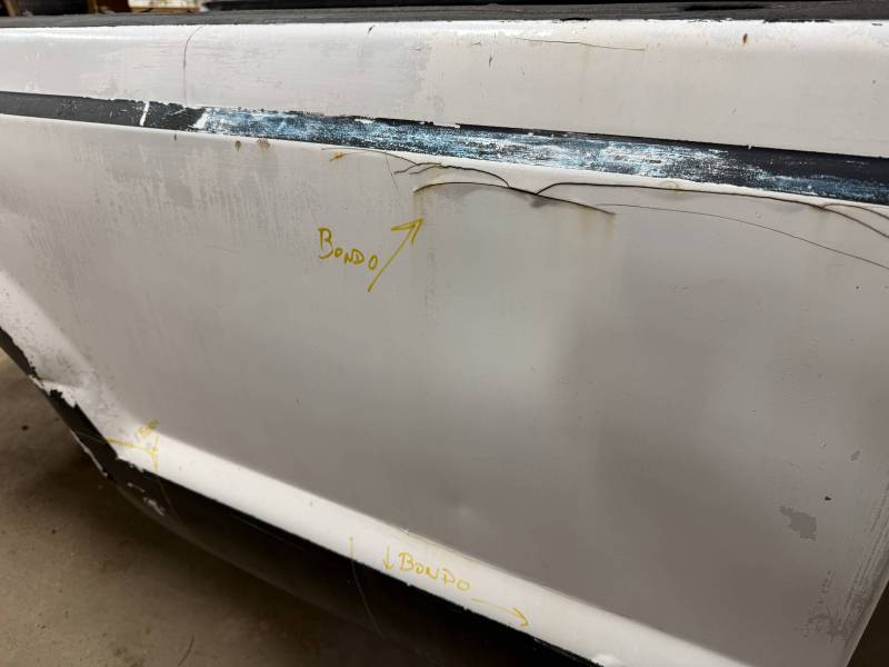 Body Work: Visible cracking Bondo (up to 3/16” thick) on the front and wheel arch.