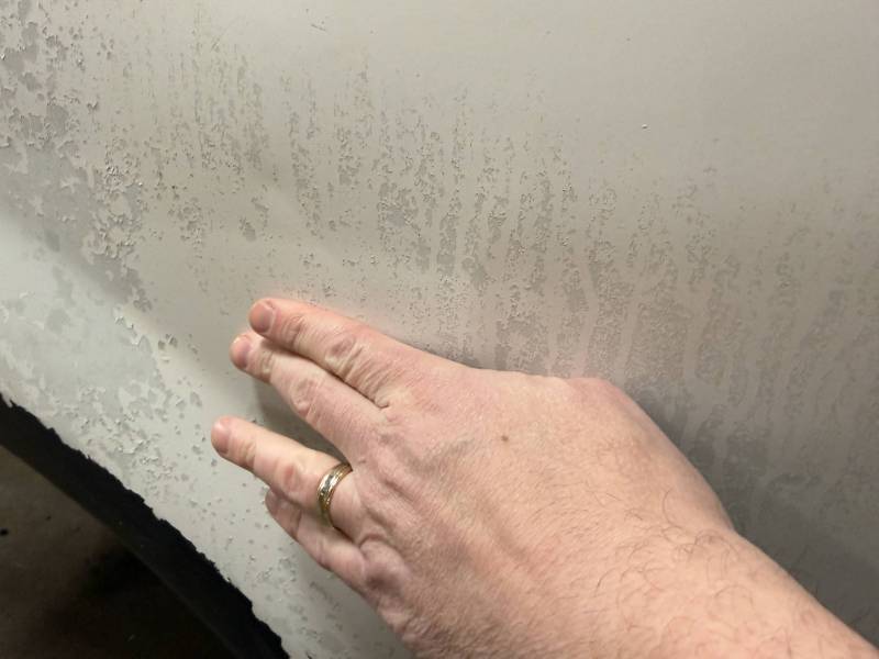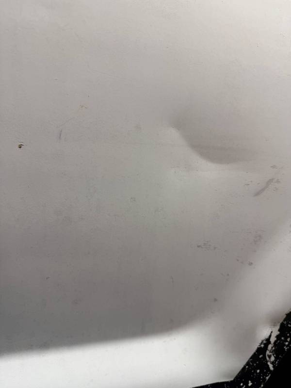 Impacts: Multiple baseball, golf ball, and quarter-sized dents.