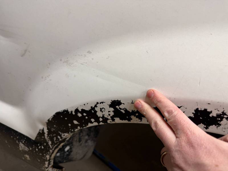 Creases: Significant creasing (4” to 12”) on the front panel and faint 4” creases on the wheel arch.