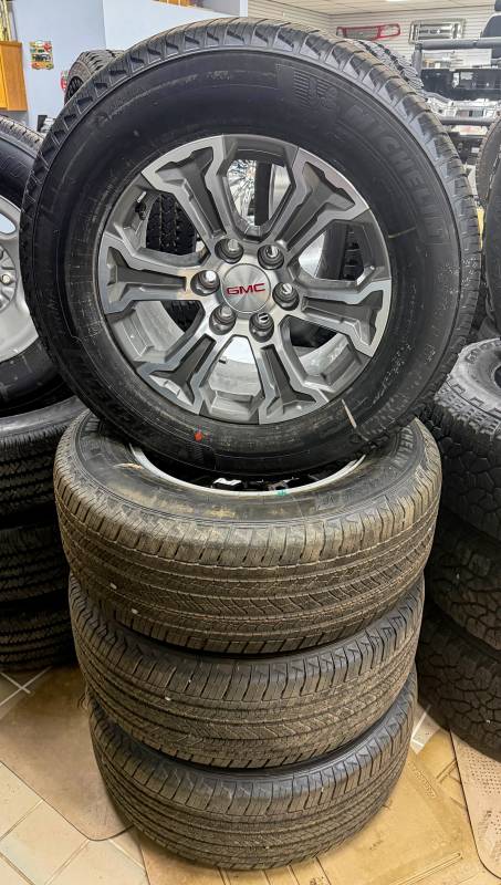 New takeoff 188-25 GMC SIERRA 1500 6 LUG Charcoal Inlay w/Machined face Aluminum Wheels with 265/65/R18 Michelin Primacy w/TPMS
