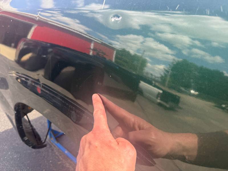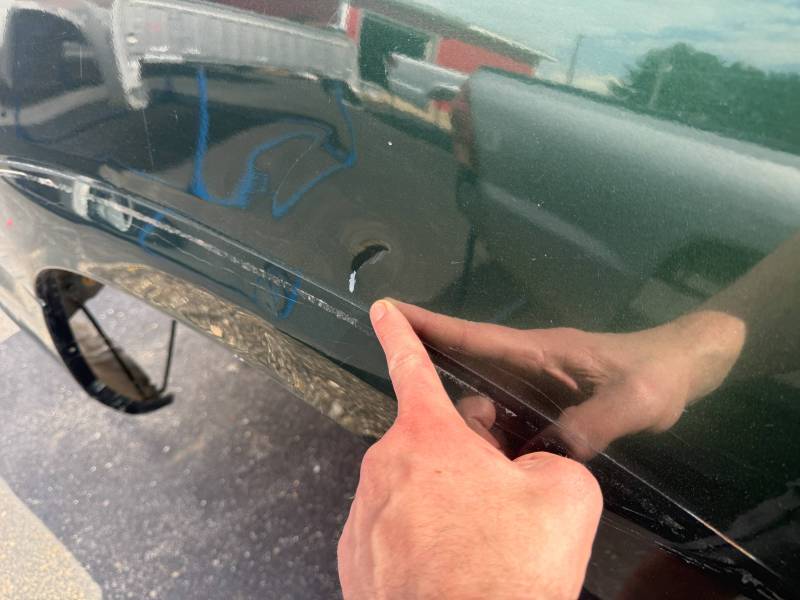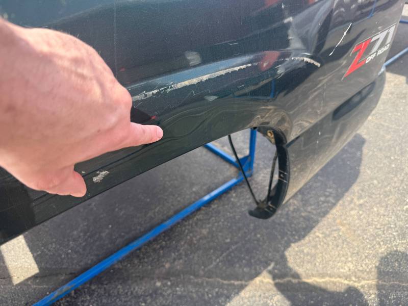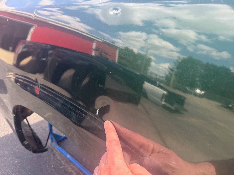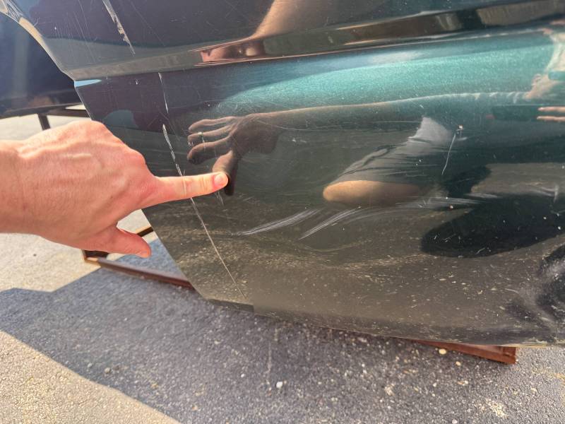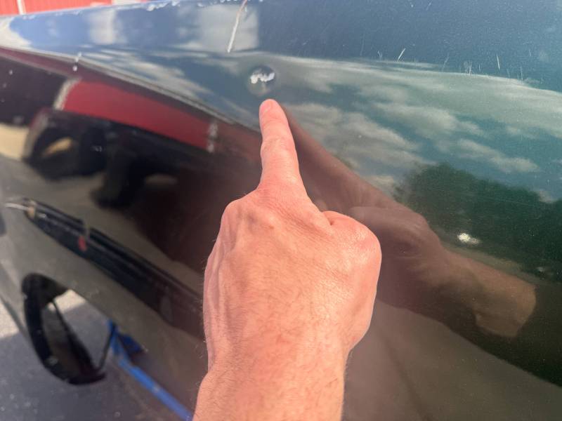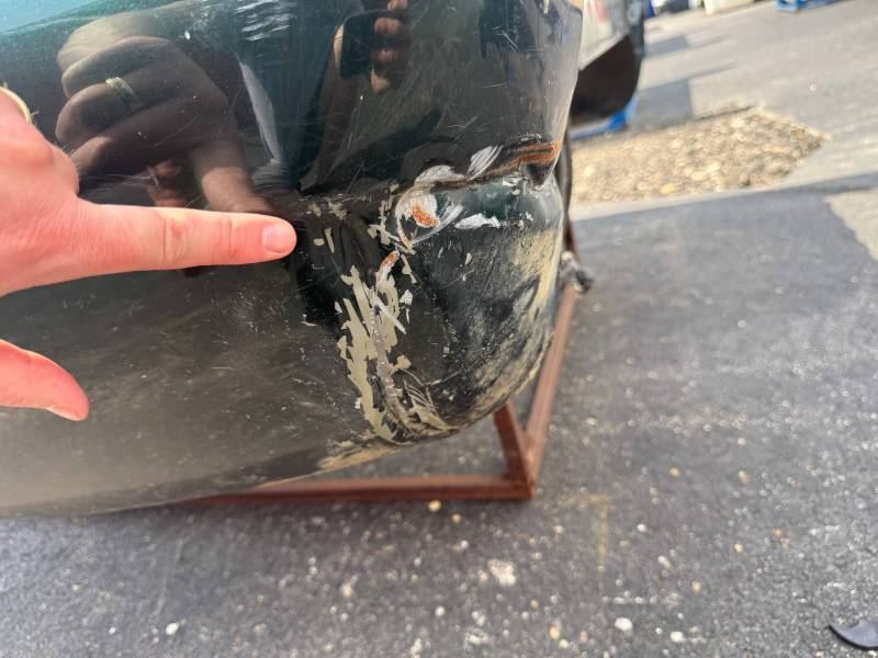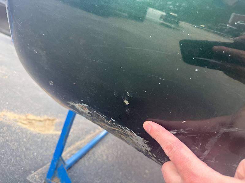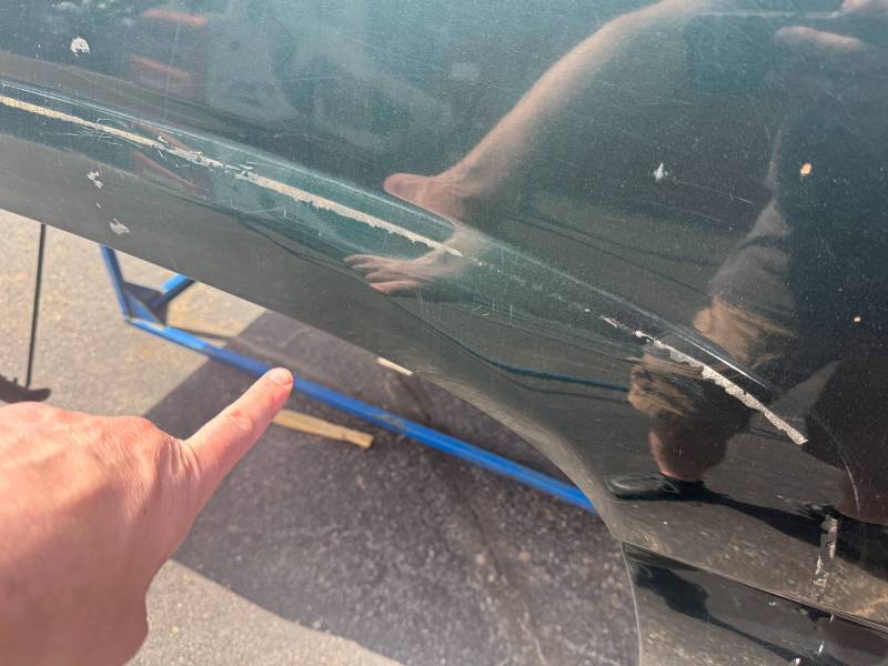 - LH Side: Quarter-sized dent near top rail; two baseball-sized dents on front lower section.