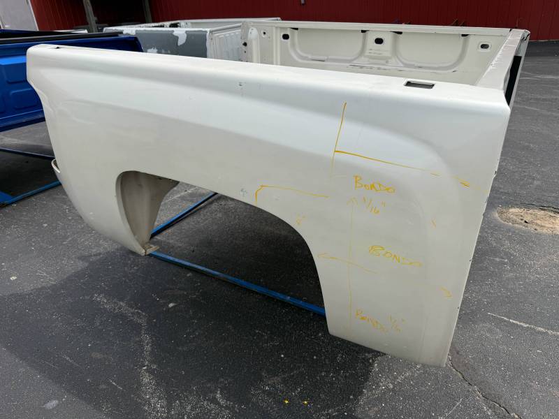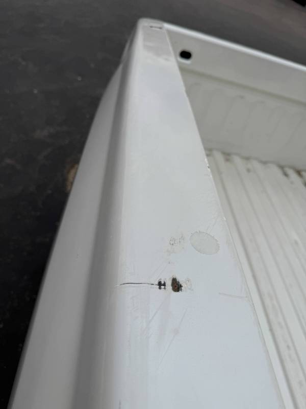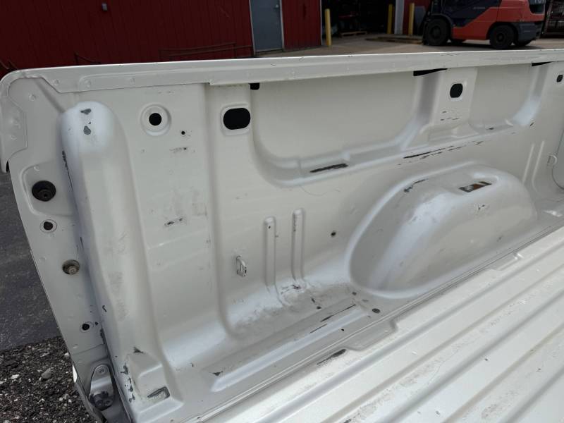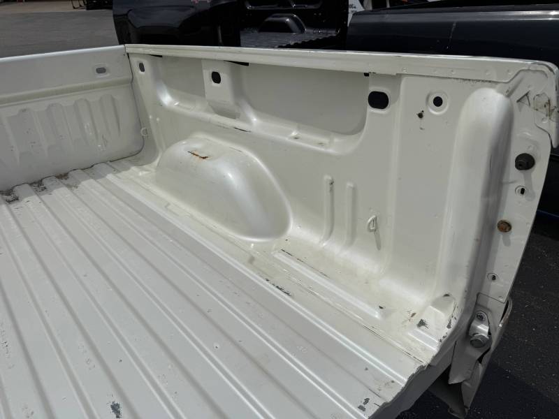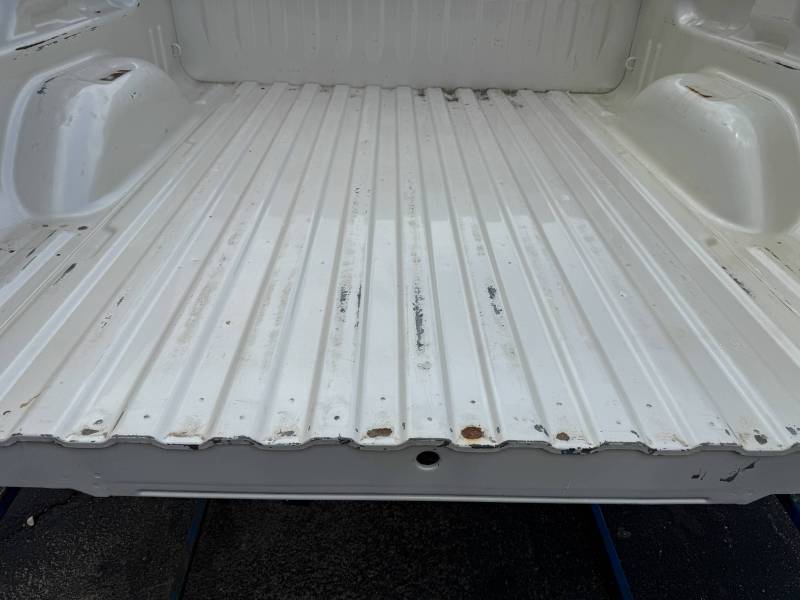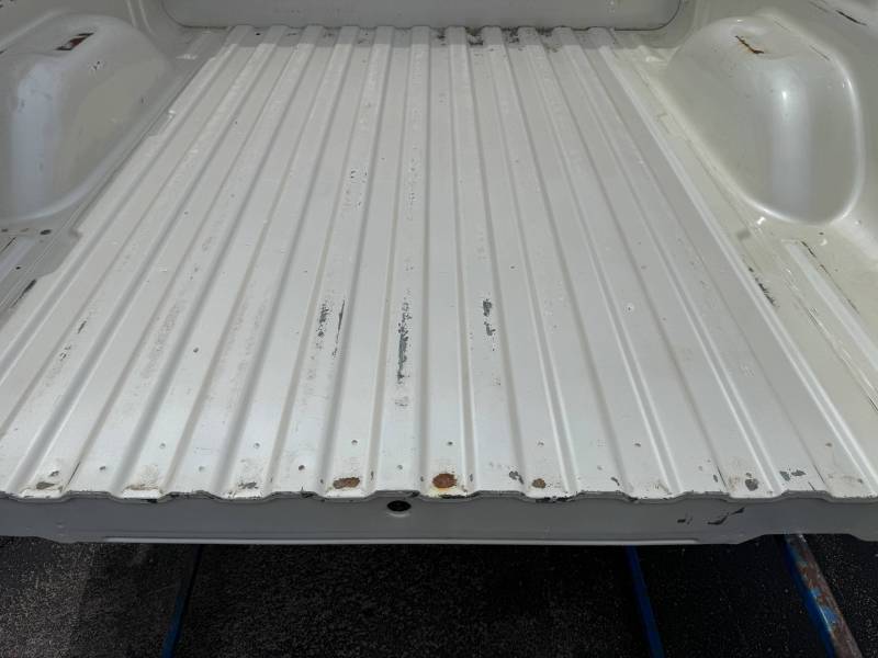 This is a used truck bed. This unit has significant body wear and previous repair work, making it an ideal candidate for a dedicated work truck, a flatbed conversion project, or for someone skilled in heavy body repair.
