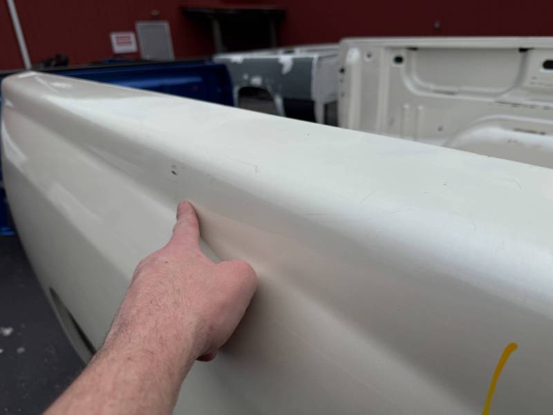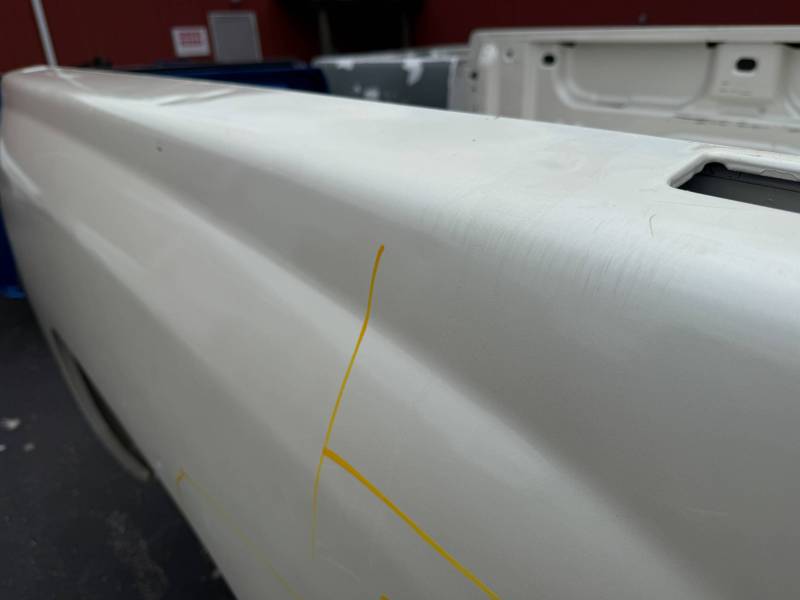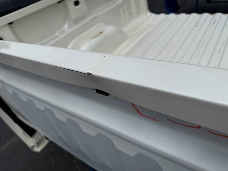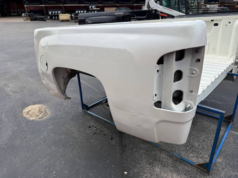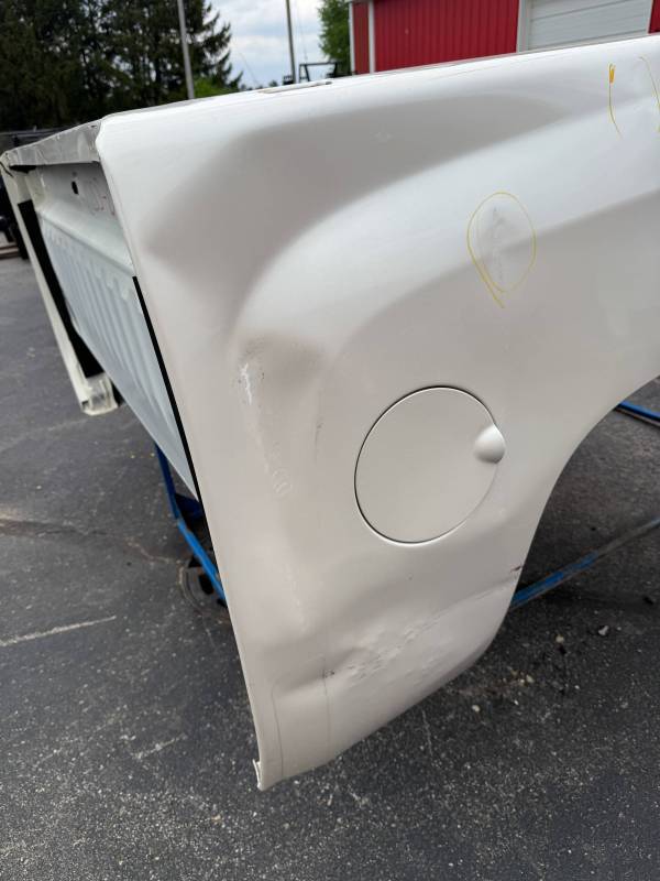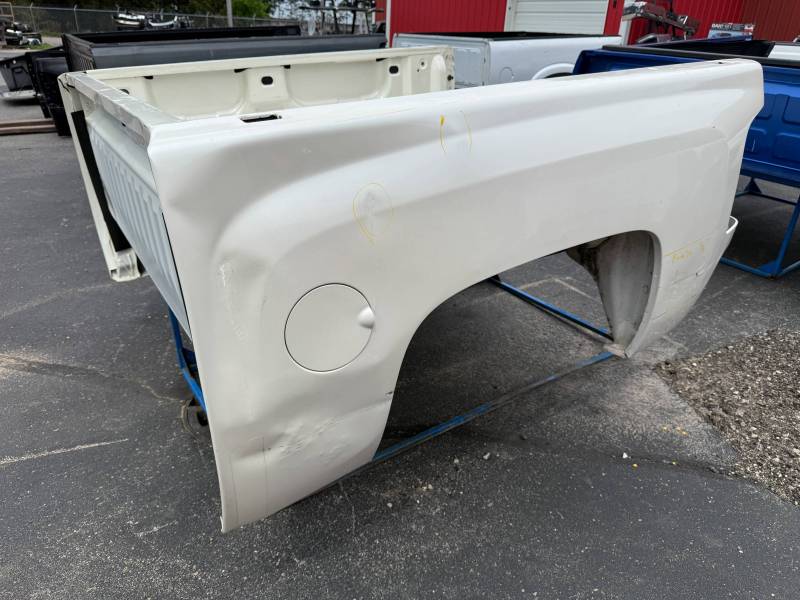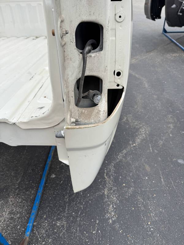This is a used truck bed. This unit has significant body wear and previous repair work, making it an ideal candidate for a dedicated work truck, a flatbed conversion project, or for someone skilled in heavy body repair.