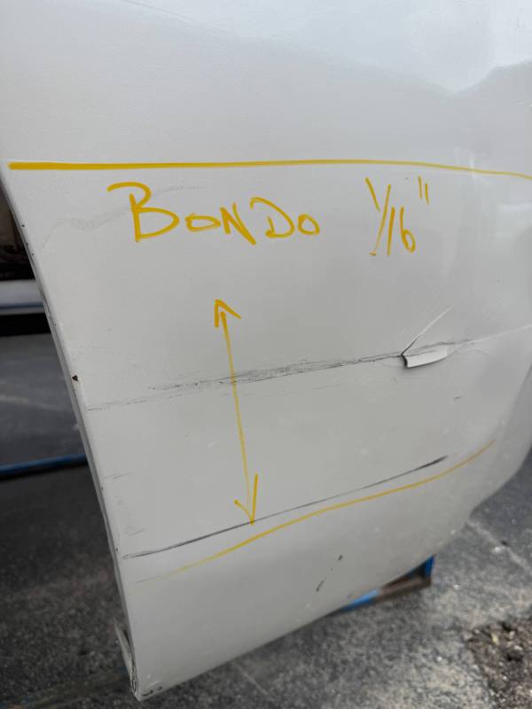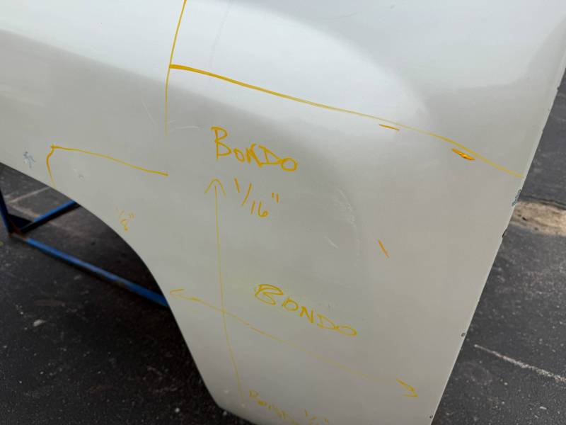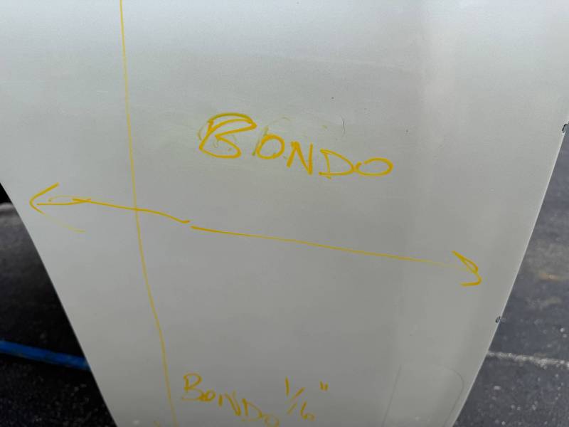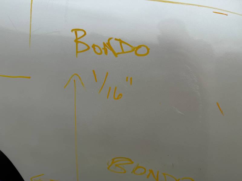 - Body Work: The front half of the RH side contains a layer of Bondo (ranging from 1/16” to unknown thickness).